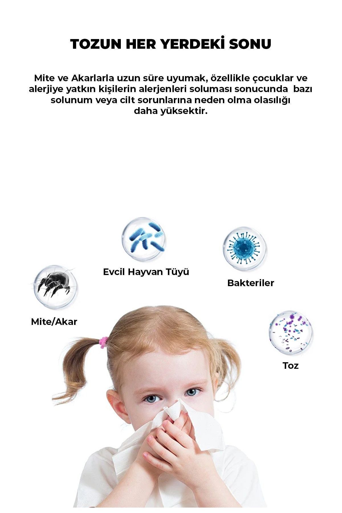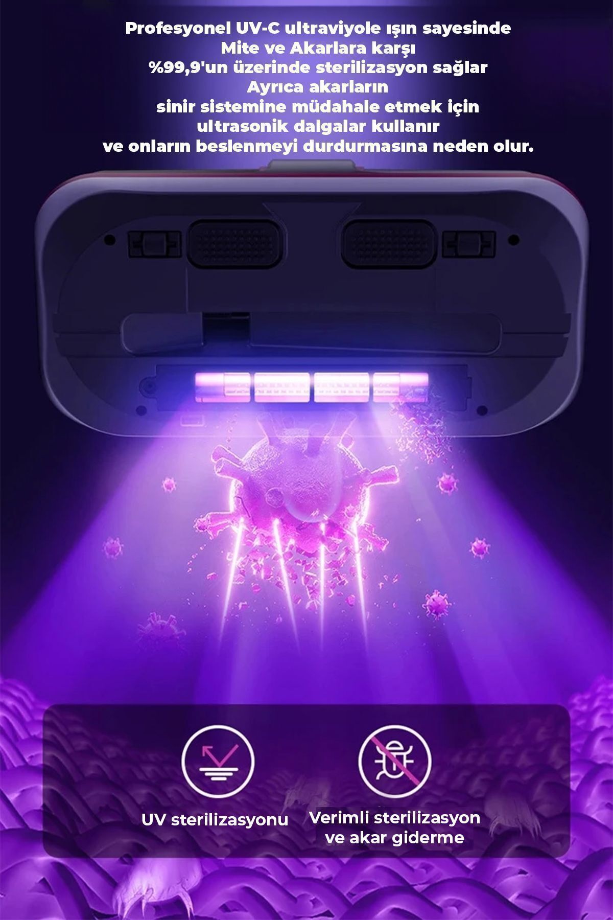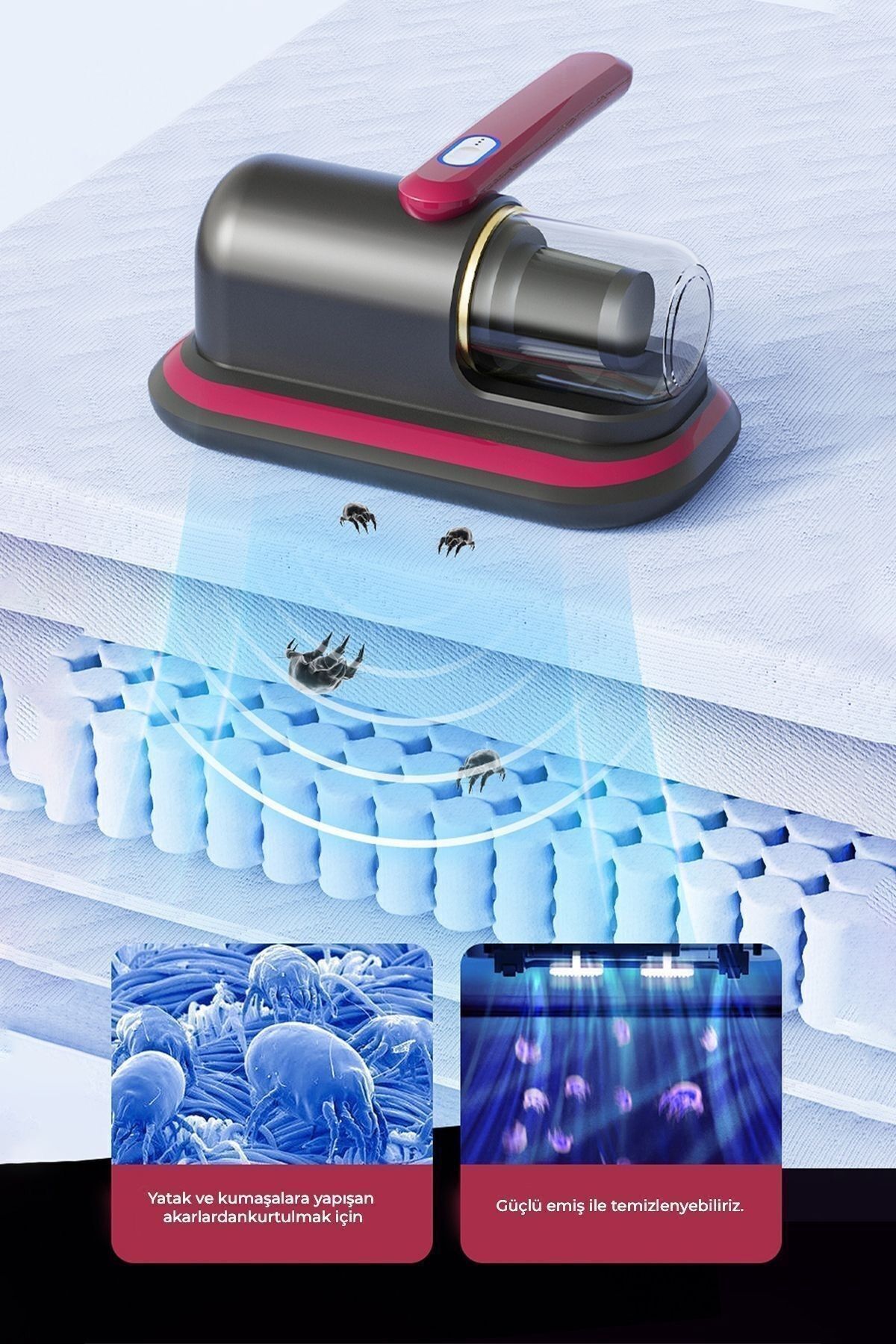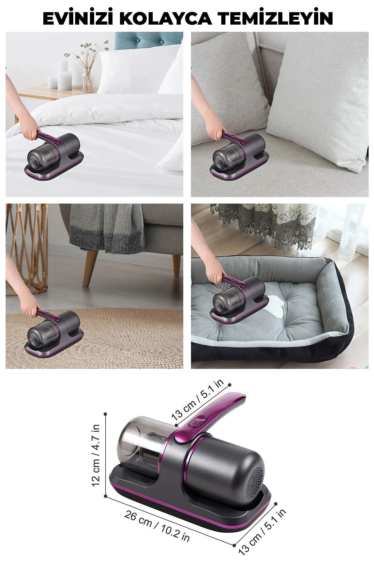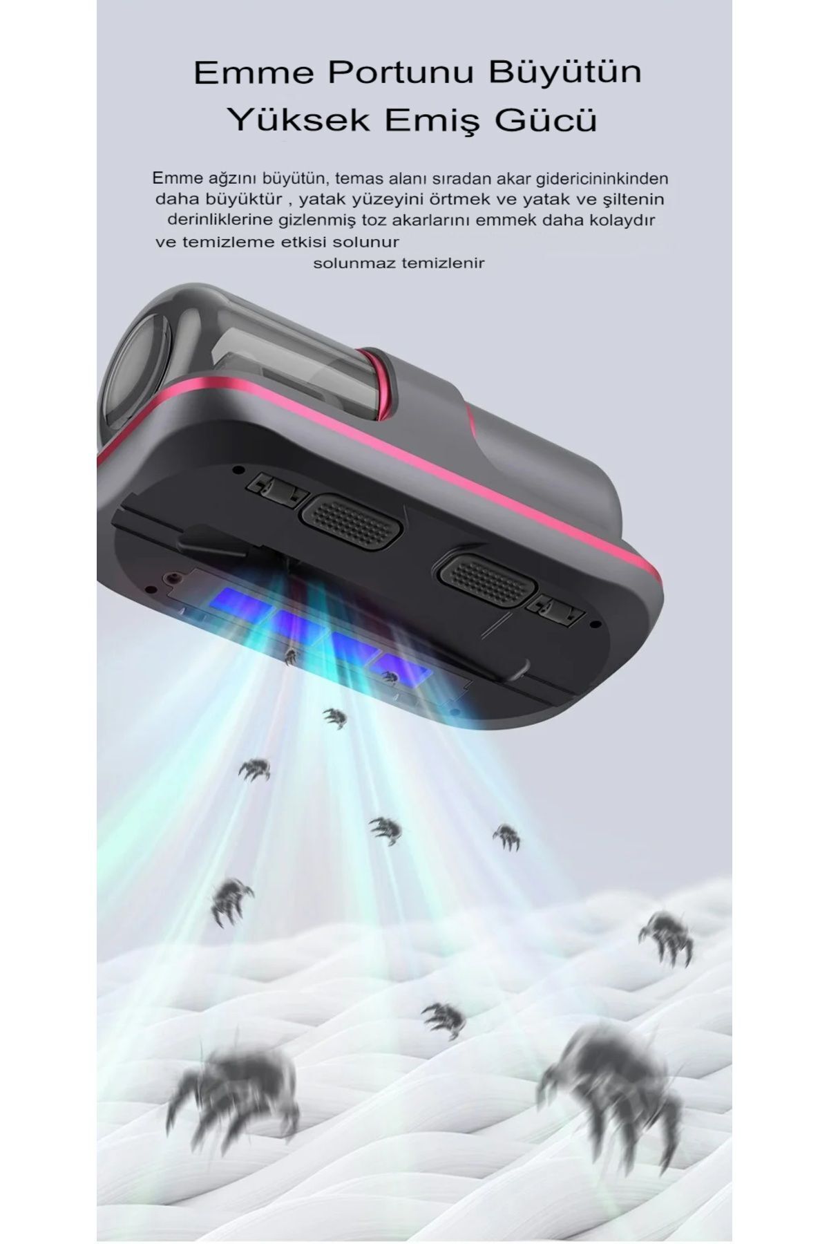 Yatak, kanepe ve halı gibi yüzeylerde biriken toz ve tüyleri etkili bir şekilde temizleyen bu cihaz, alerjiye neden olabilecek partikülleri de ortadan kaldırarak sağlıklı bir yaşam alanı sunar.