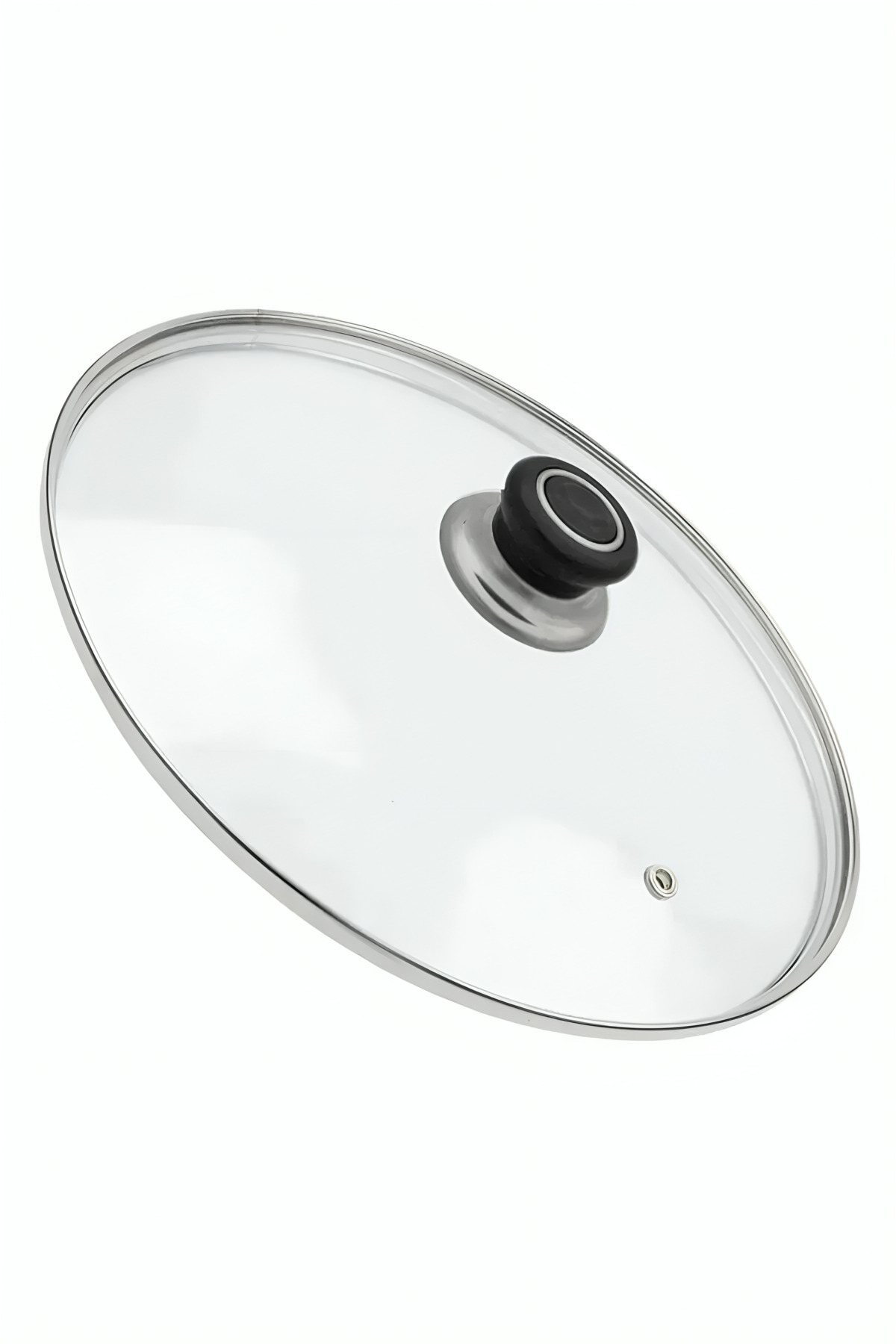 Tencere Sahan Tava Cam Kapağı Buhar Delikli Kapak 26 Cm Siyah Tutma Tepesi