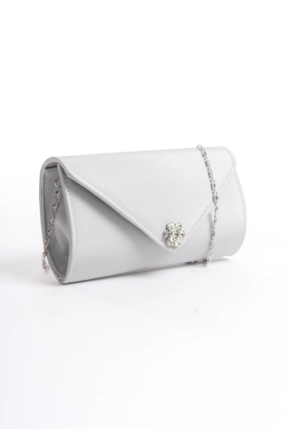 Gümüş rengi ve taş detaylarıyla ışıltınızı artırarak, gece boyunca parıldamanızı sağlar