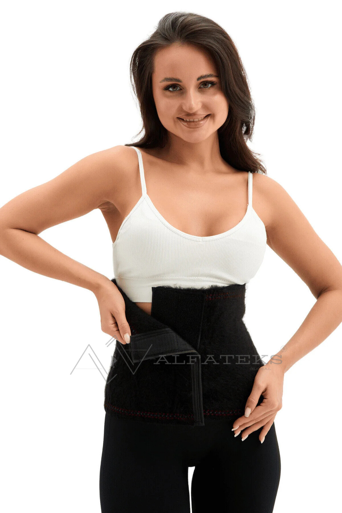 Göbek bölgesindeki istenmeyen şişkin formun önüne geçer ve fit gösterir.
