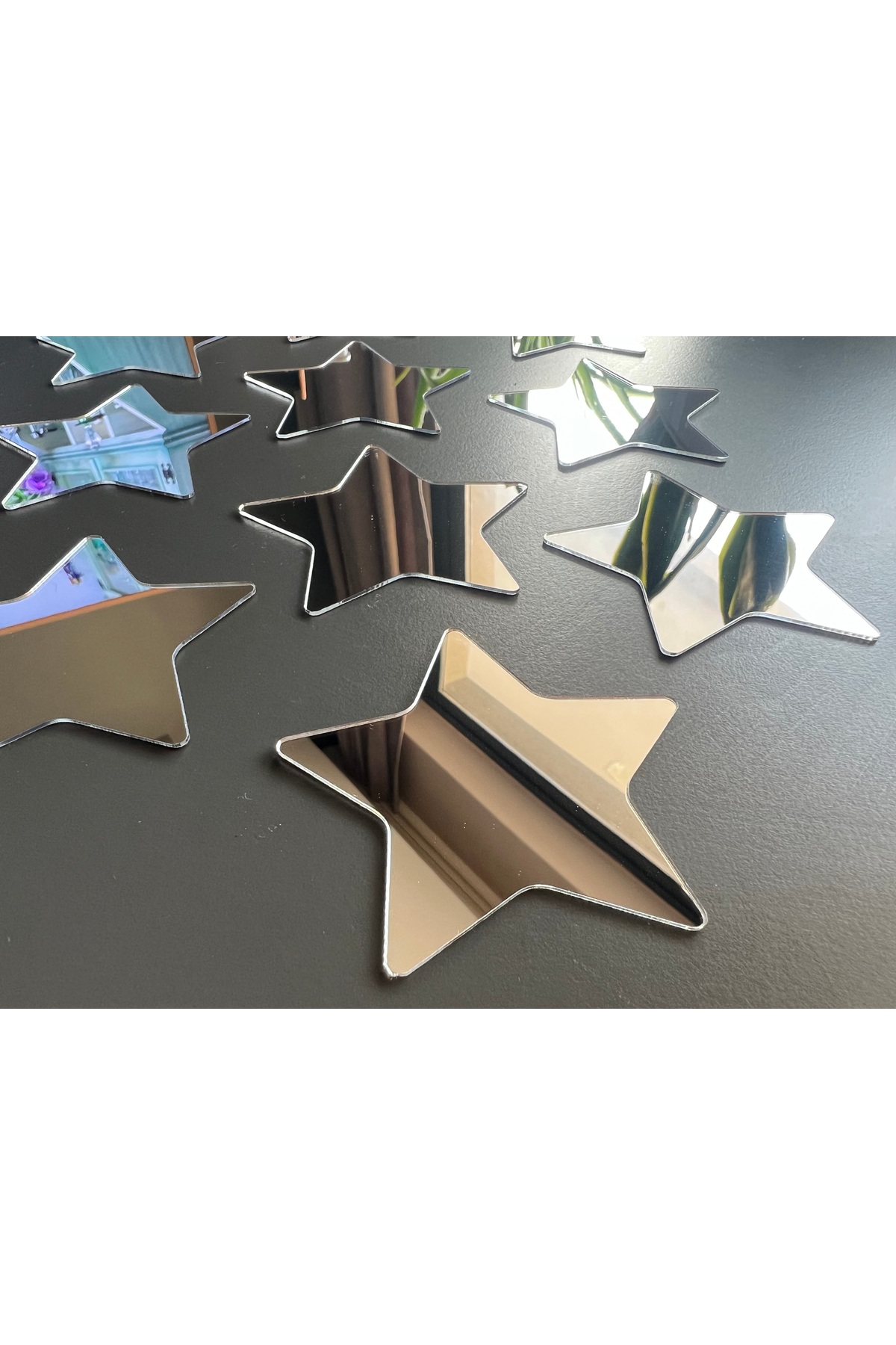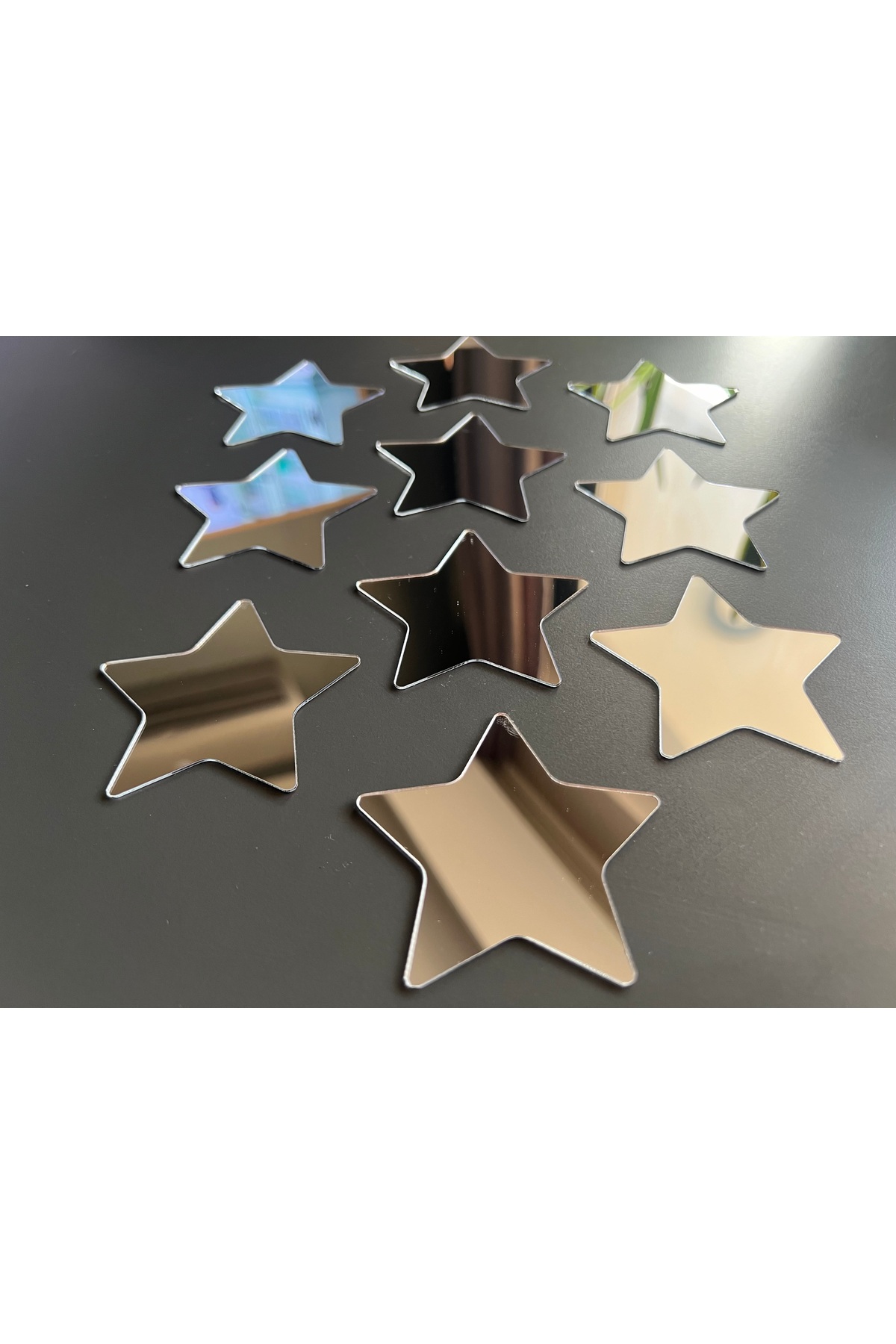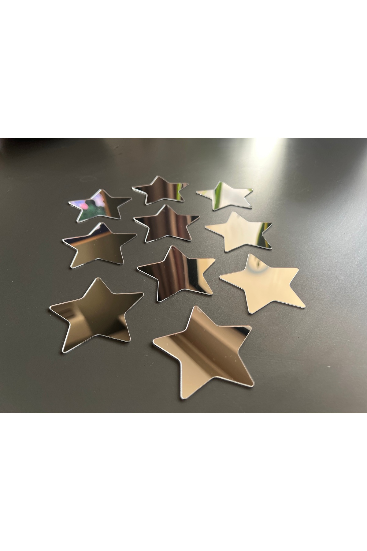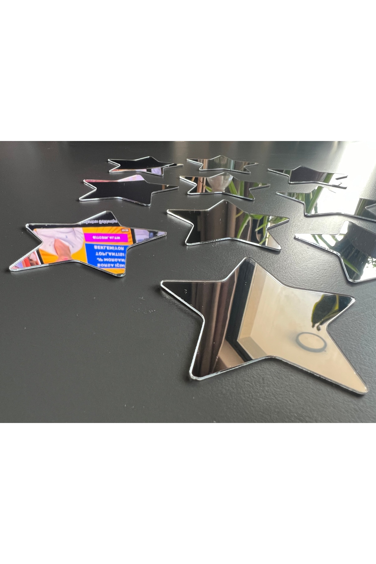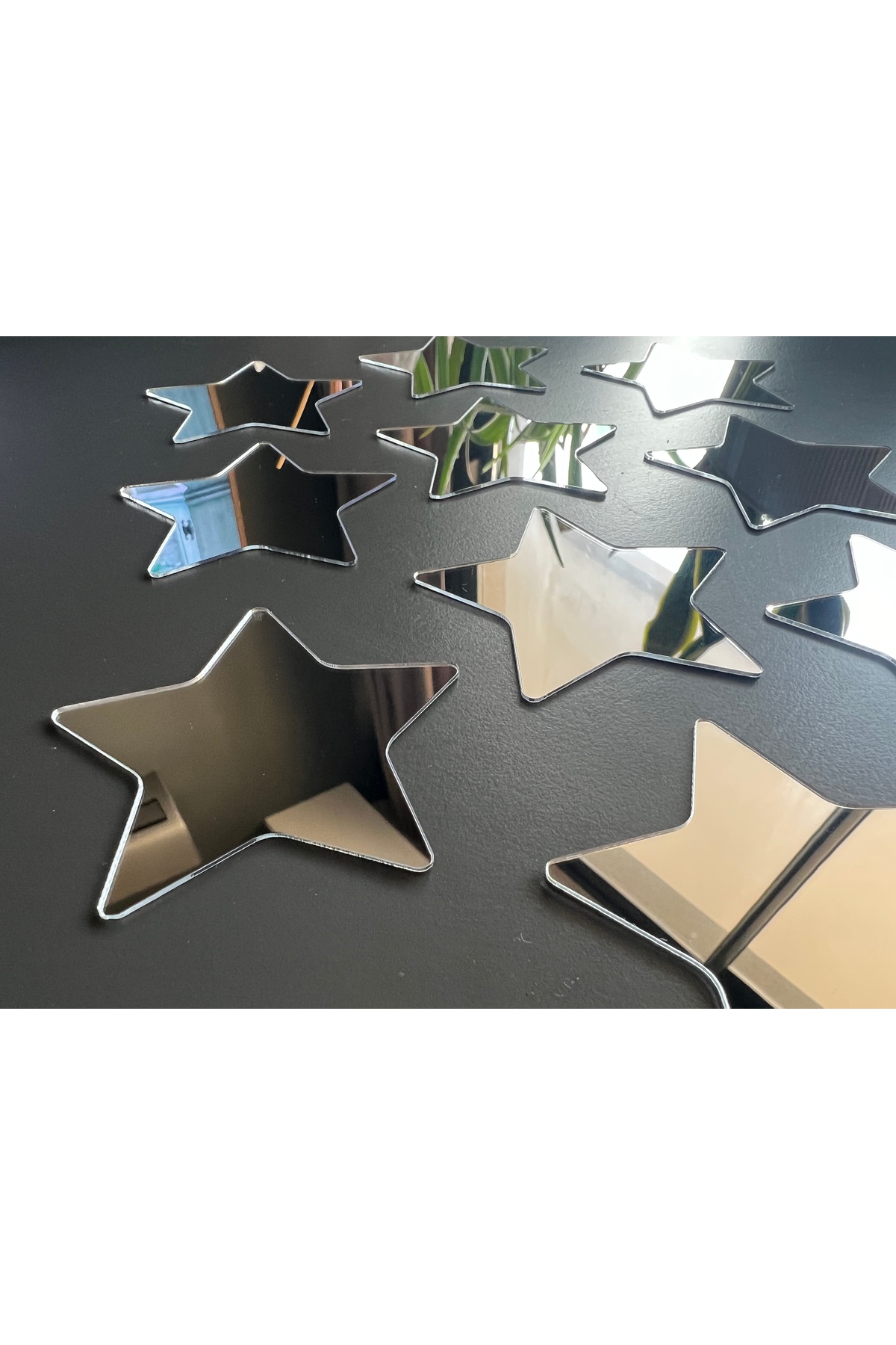 Geometrik tasarımıyla modern ve şık bir görünüm sunan 10 adet dekoratif ayna pleksi yıldız duvar süsü, mekanınıza estetik bir dokunuş katıyor