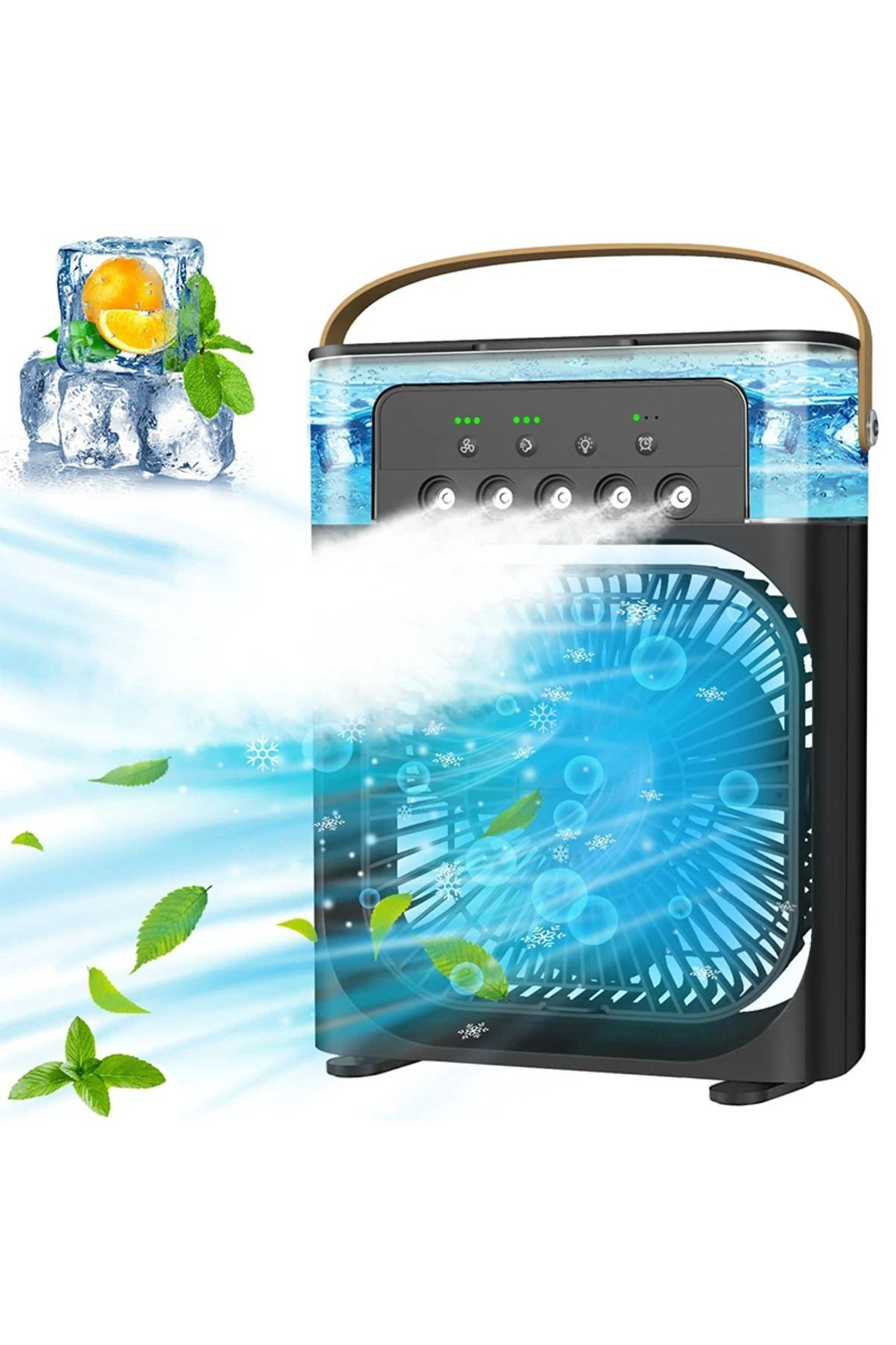 Su püskürtme özelliği ile hem serinletici hem de nemlendirici bir etki yaratarak, sıcak ve kuru havalarda konforlu bir ortam oluşturur.