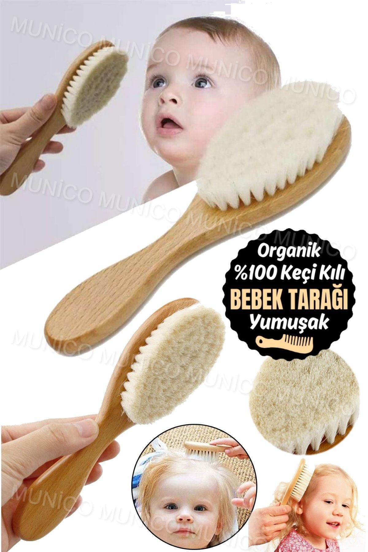 Yumuşak Keçi Kılı Saç Fırçası Bebekler İçin Doğal Bakım Bebek Saç Fırçası ve Tarak Seti Ahşap Saplı