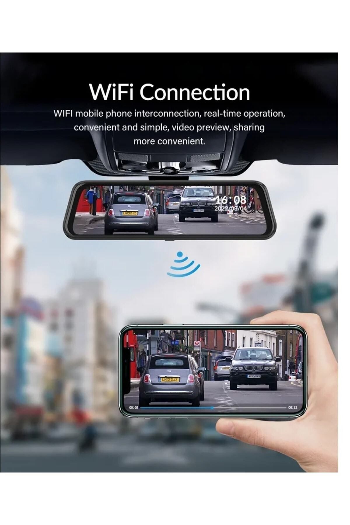 PREMİUM Mb-5100-1 ULTRA HD 2K 10 İNÇ AYNA KAMERA (WİFİ+GPS) Türkçe Menü Çift Kameralı ARAÇ KAMERA