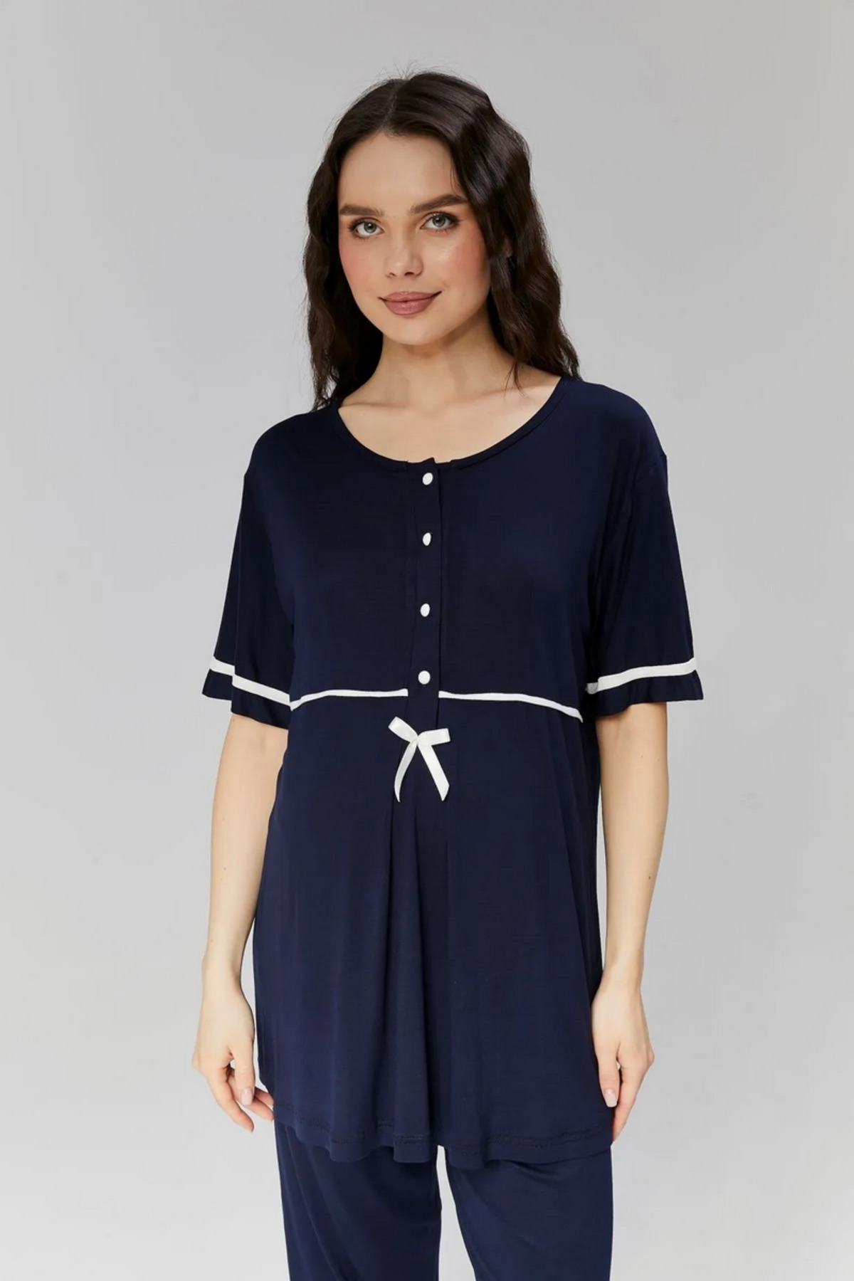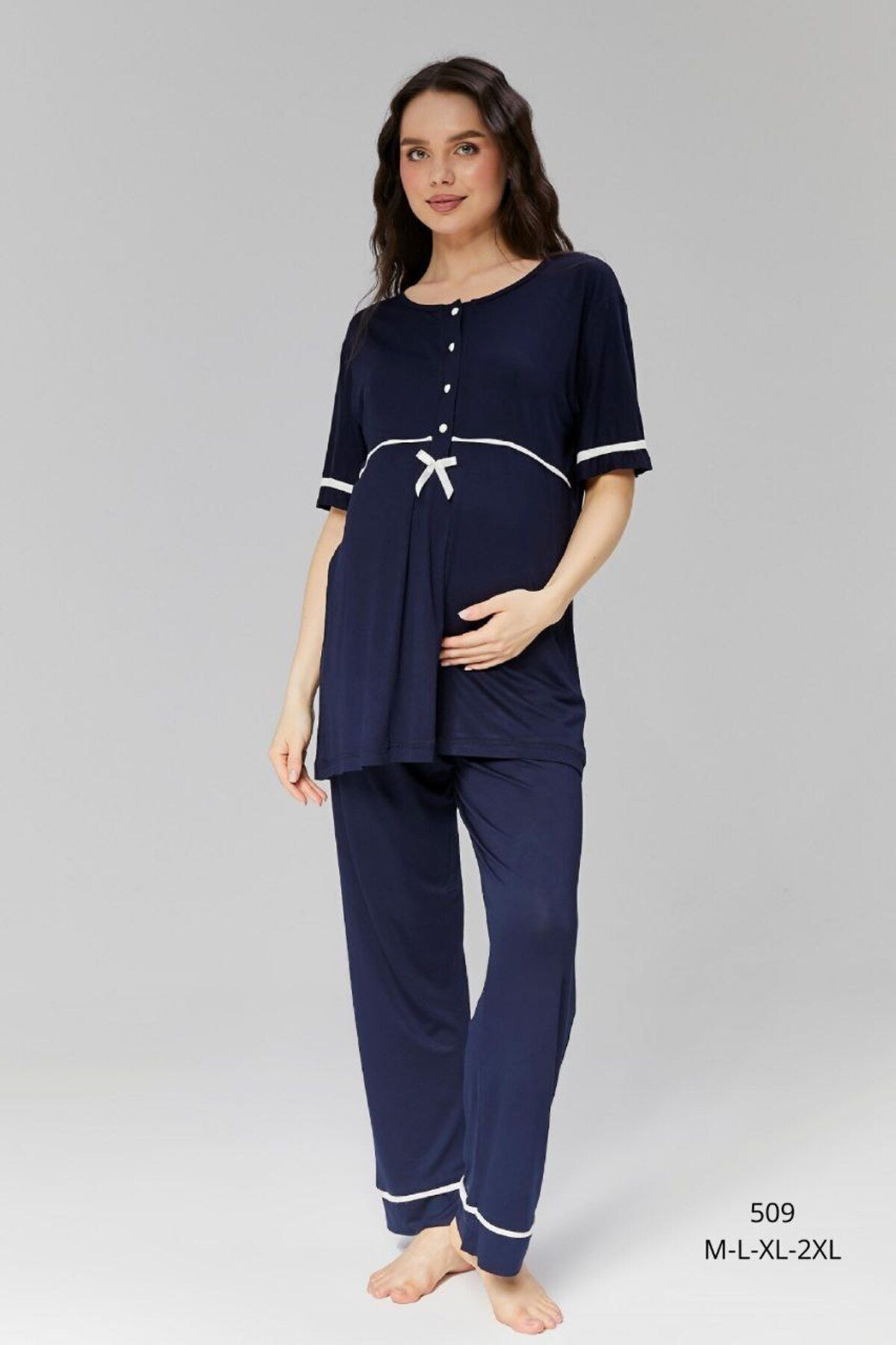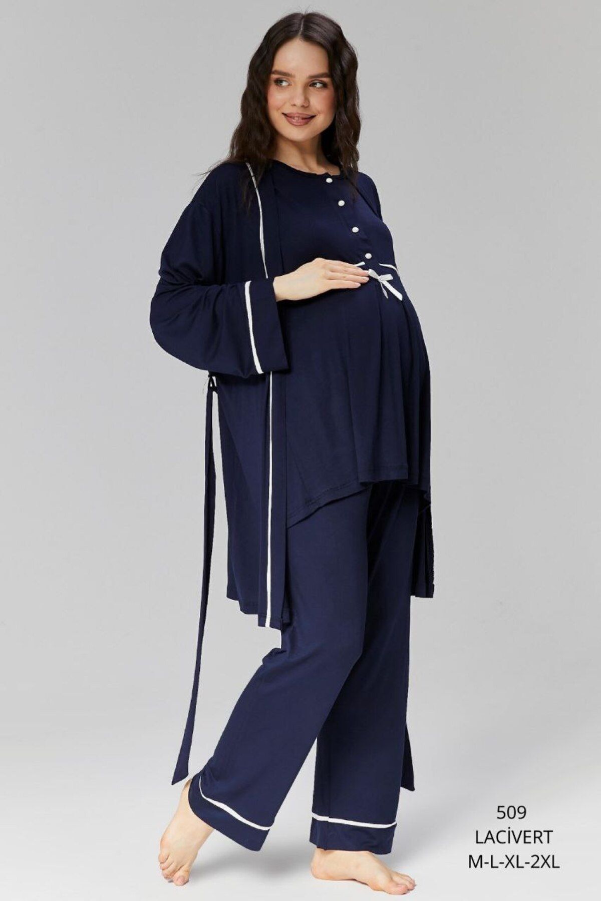 Hamile koleksiyonuna özel olarak tasarlanmış bu pijama takımı, annelik dönemindeki ihtiyaçları göz önünde bul