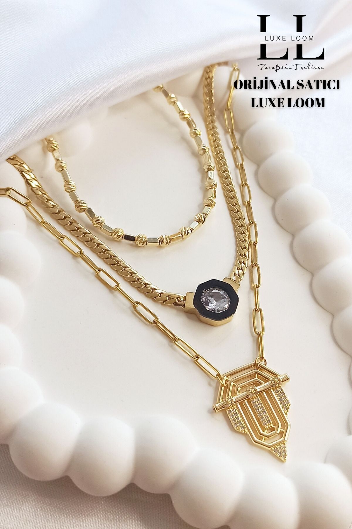 ilham alınarak tasarlanan bu kolyeler, gold rengin zarafetini ve lüksünü yansıtıyor.