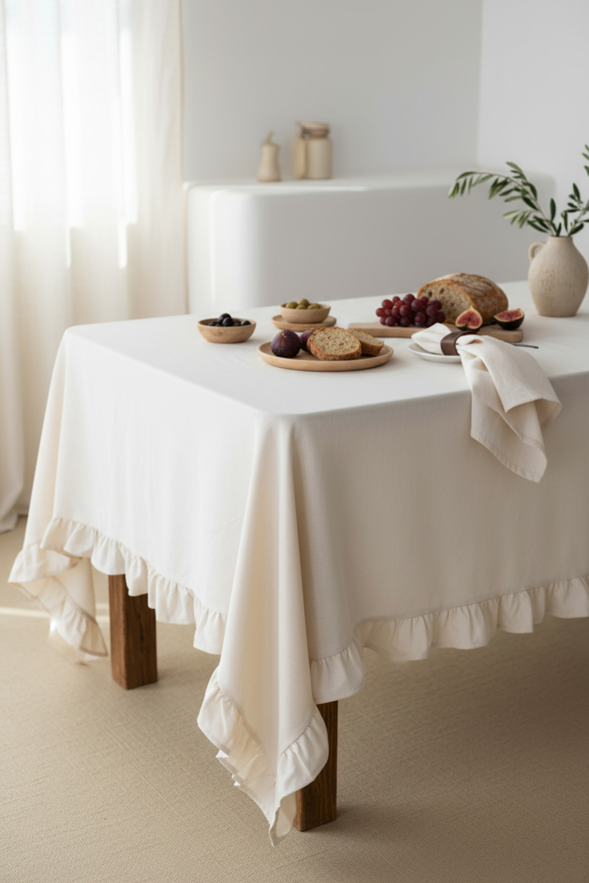 Ürün Adı: Rufle | Keten Fırfırlı Masa Örtüsü