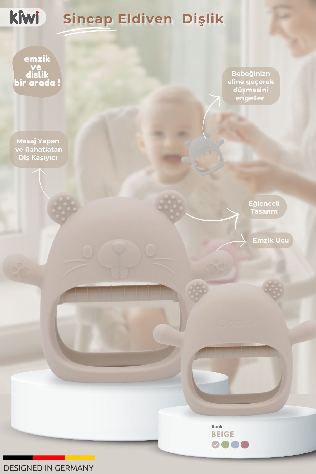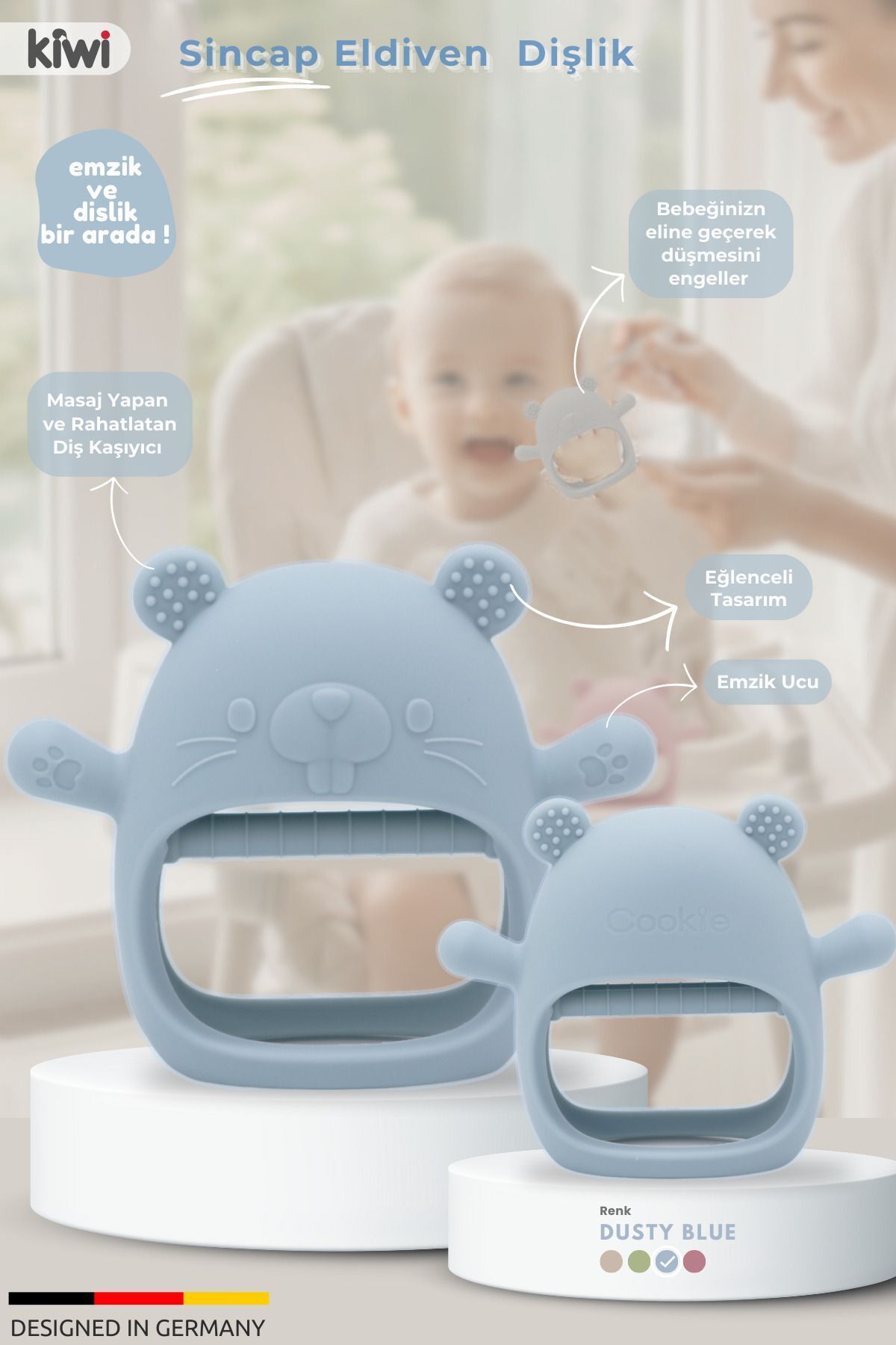 - Bebeklerin ilk diş çıkarma dönemlerinde rahatlıkla kullanabileceği, eldiven şeklinde tasarlanmış diş kaşıyıcı