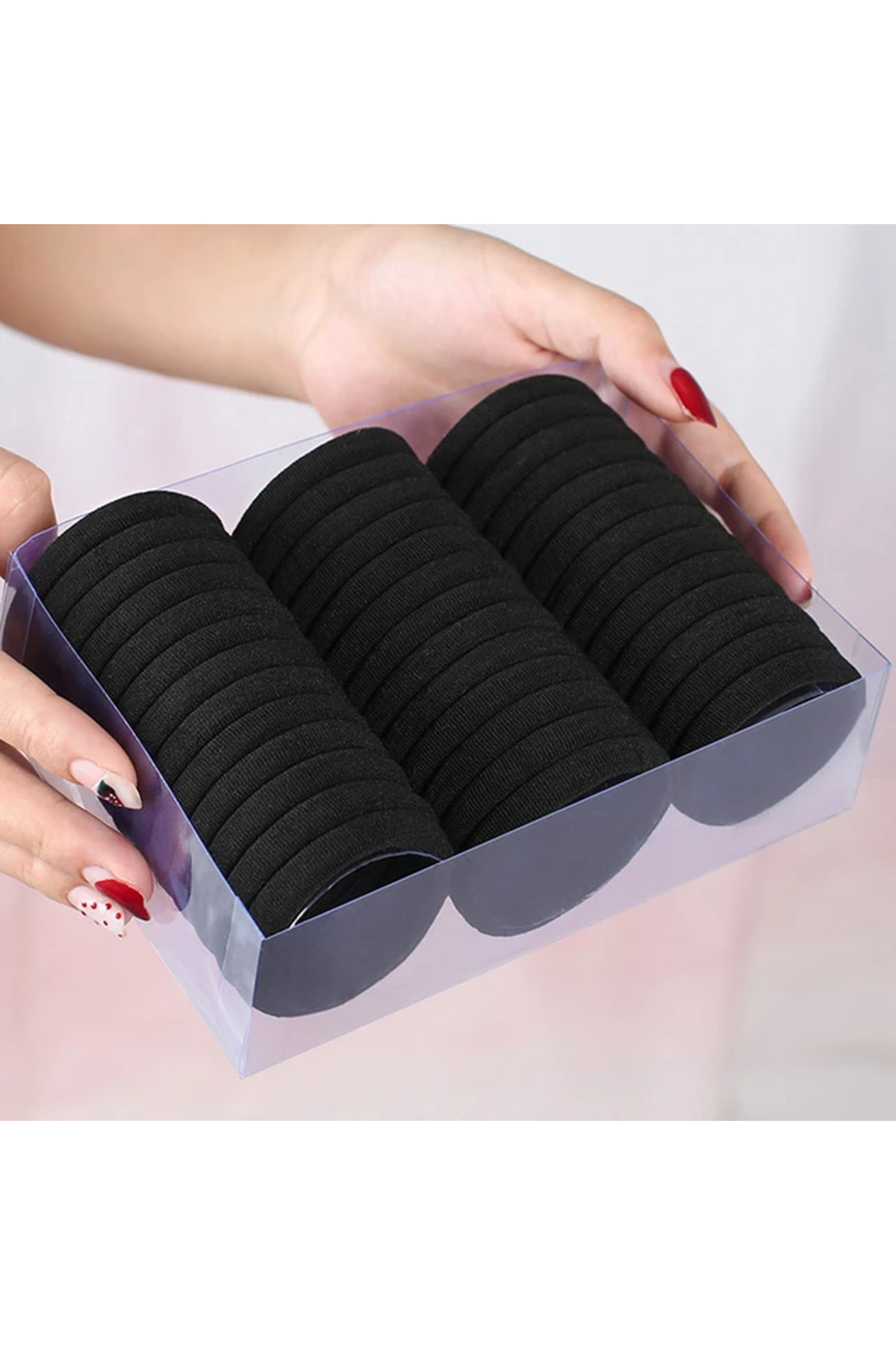 Kadın 50'li Siyah Ultra Esnek Havlu Lastik Toka Seti