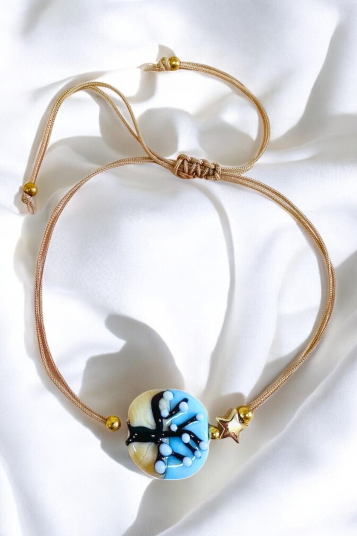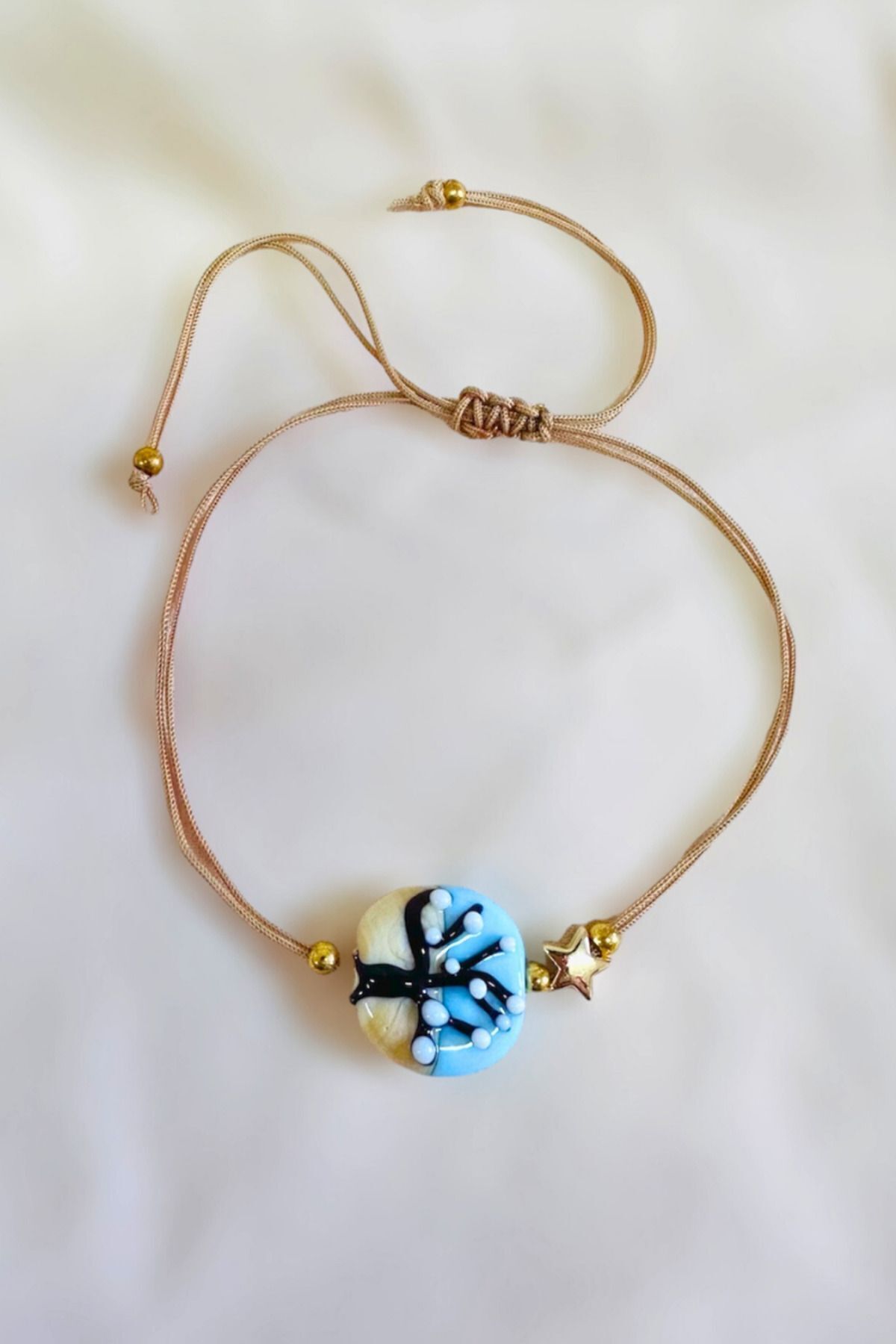 - El yapımı cam malzemesiyle üretilmiş, her bir bileklik benzersiz ve otantik bir görünüm sunar.