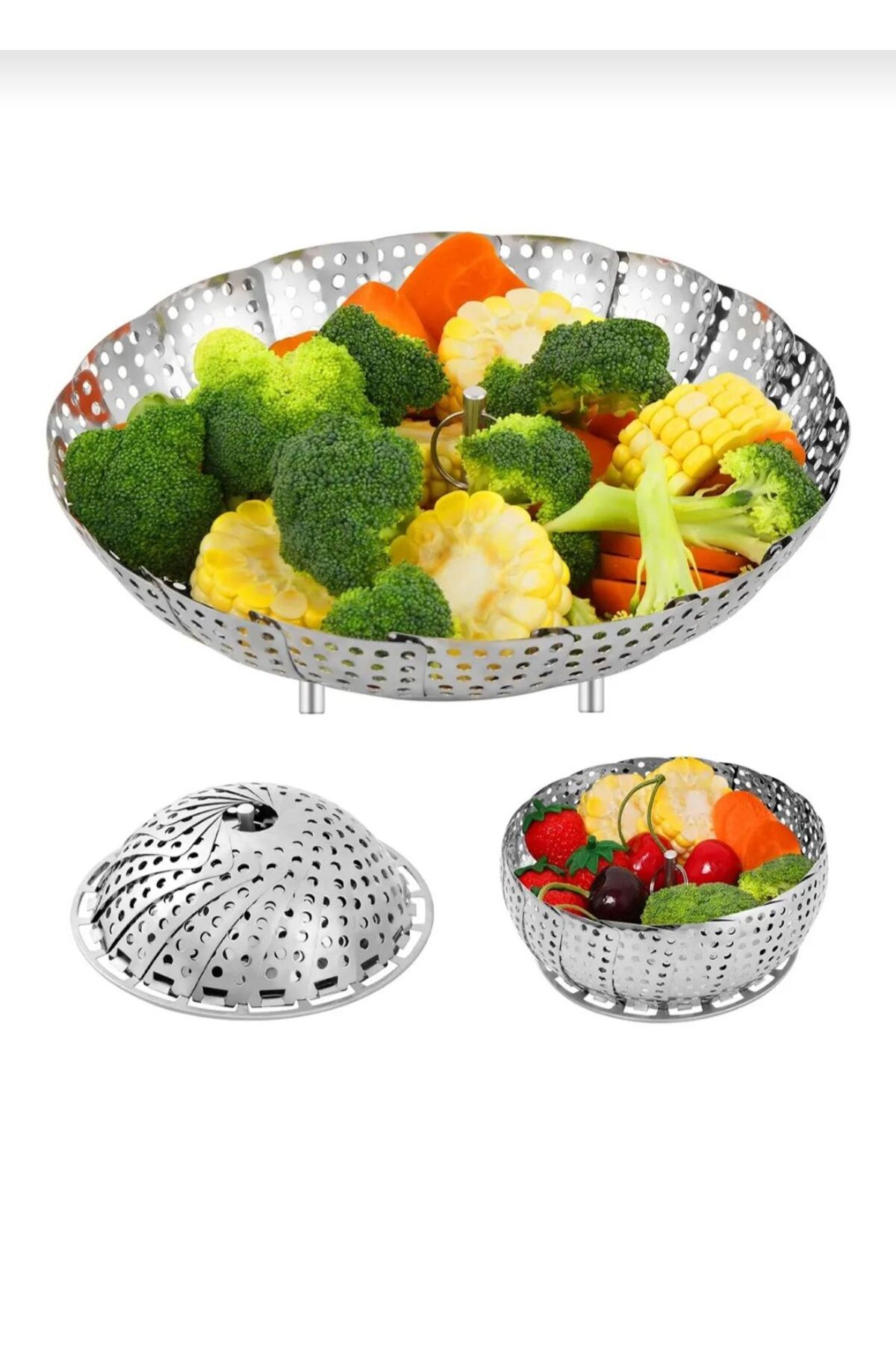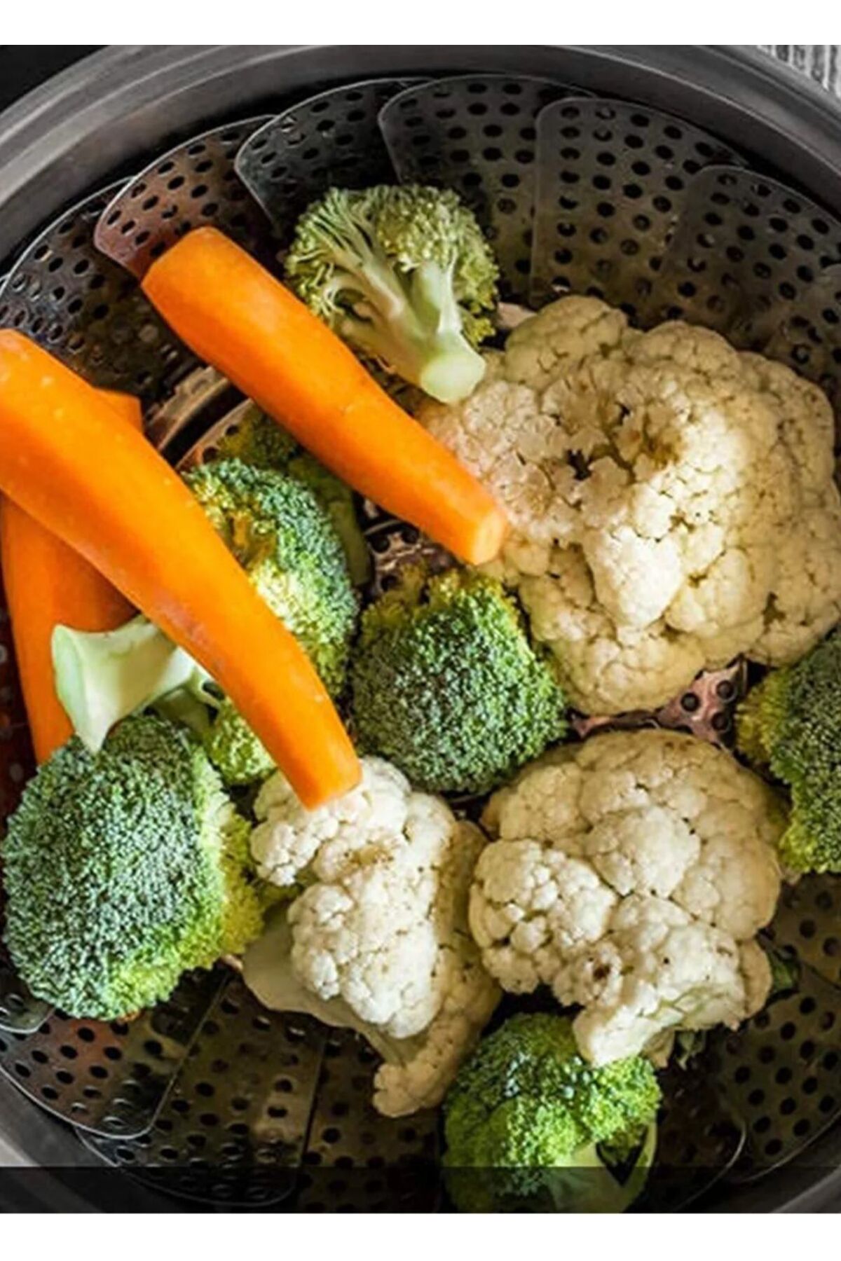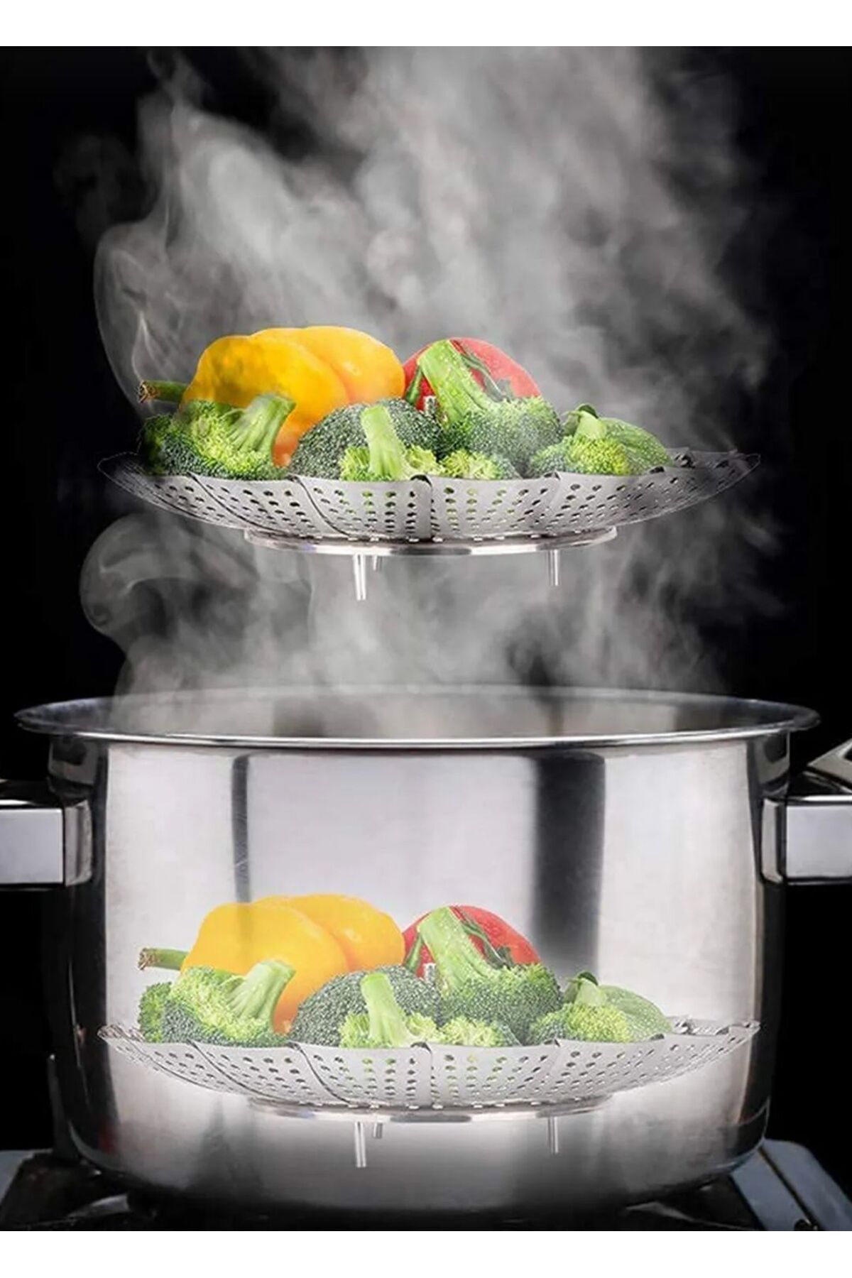 Sebze haşlama sepetine sebzeleri koyun ve tencereye yerleştirin, delikleri sayesinde sebzeleriniz buharda sağlıklı ve mükemmel şekilde pişsin! Açılır kapanır olması sayesinde farklı boy tencerelere uyum sağlar.