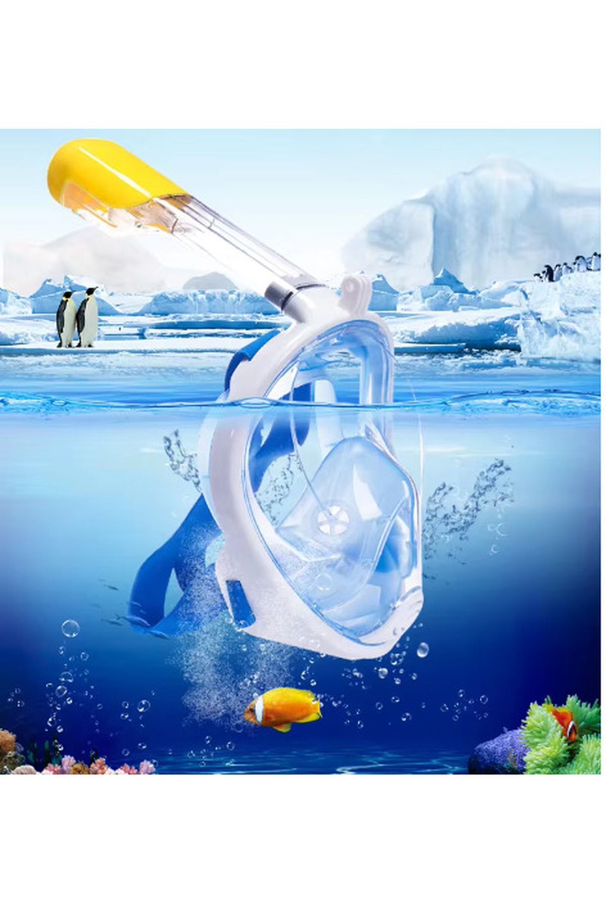 Tam Yüz Şnorkel Dalış Maskesi-Su Altı Keşif Maskesi-Buğu Önleyici-Aksiyon Kamerası Aparatı