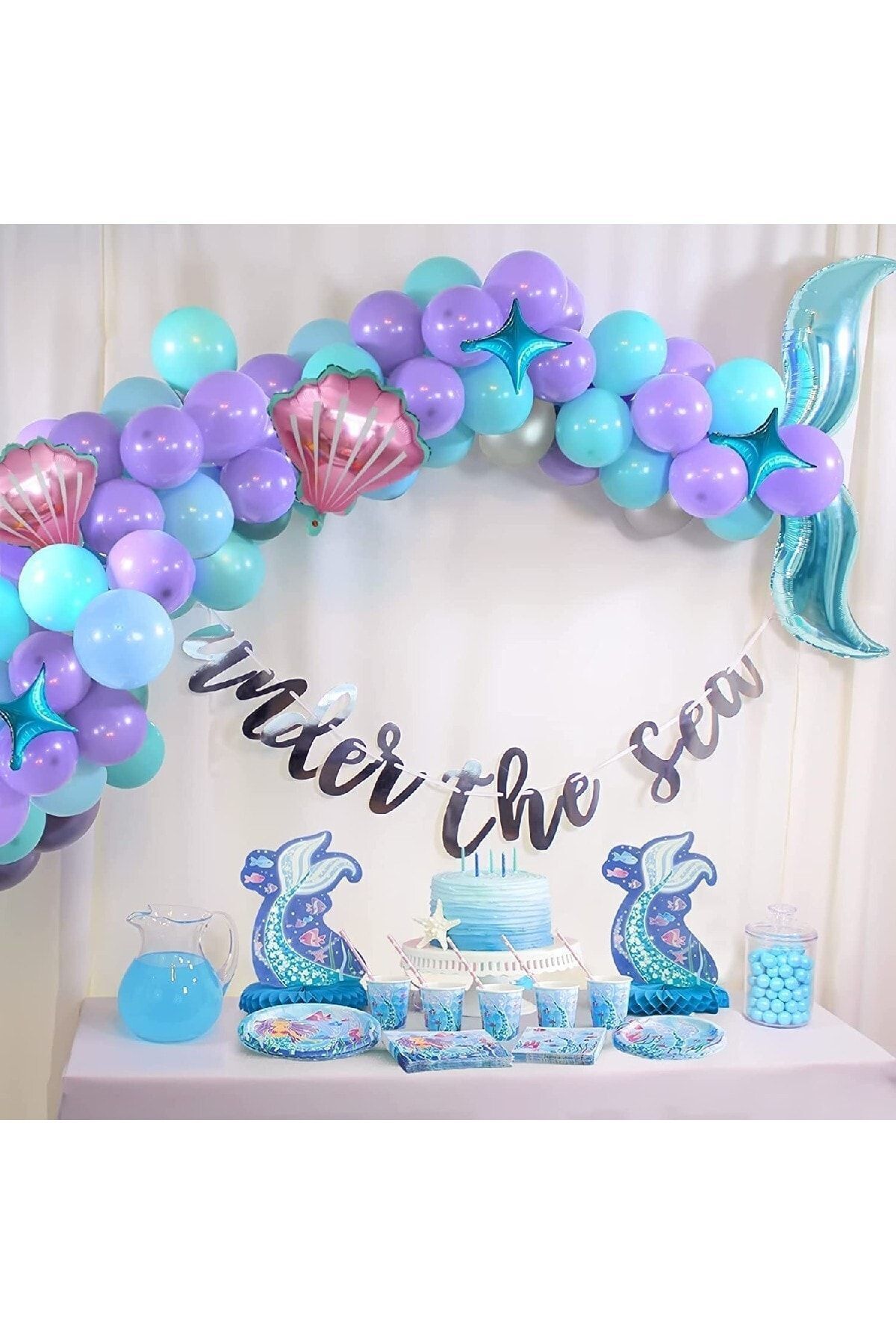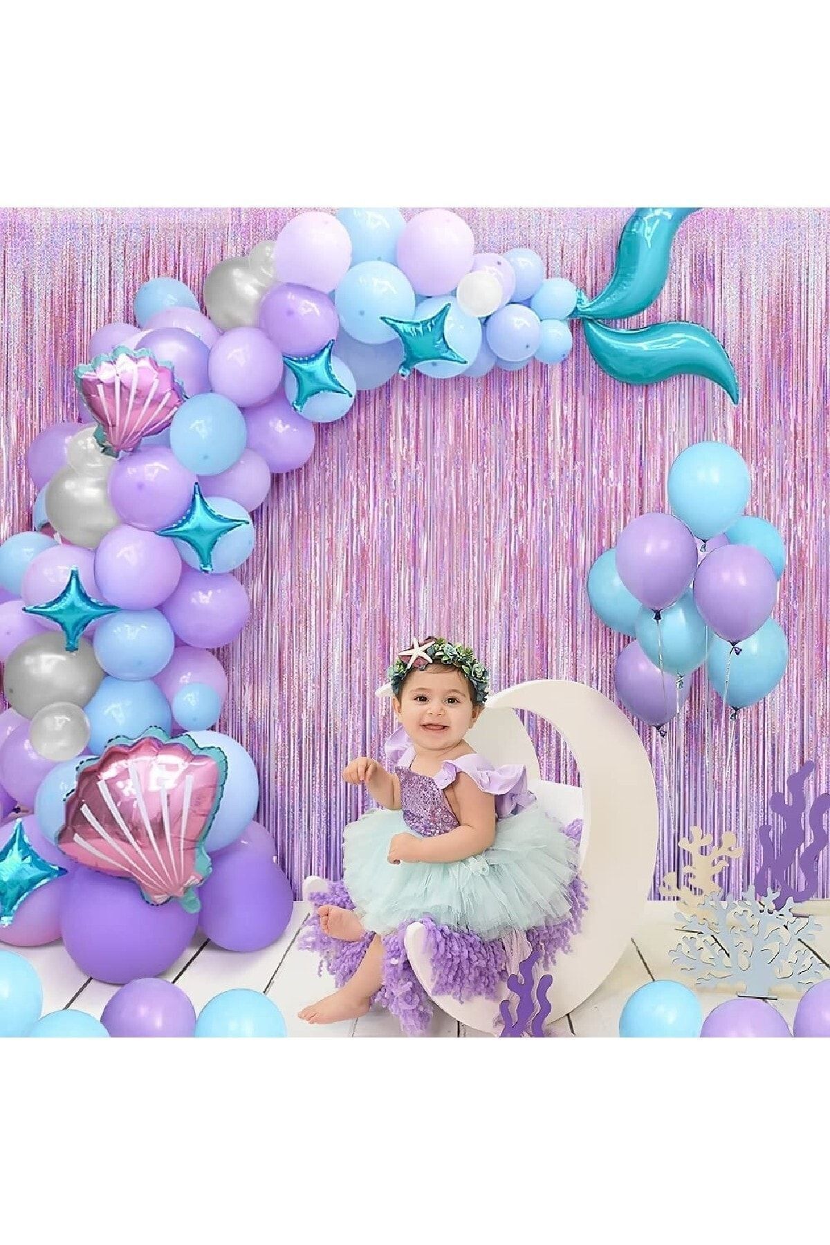 161141 Modern Tsrm Kız Çocuklar Için Deniz Kızı Balon Mavi Mor Balonlar Folyo Saçak Perde Seti Doğum Günü Parti Süsü Sell