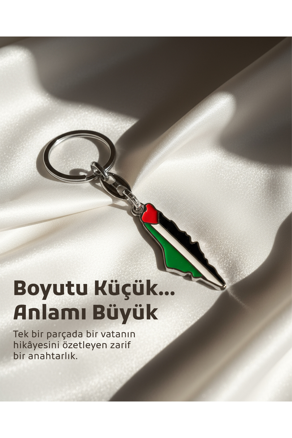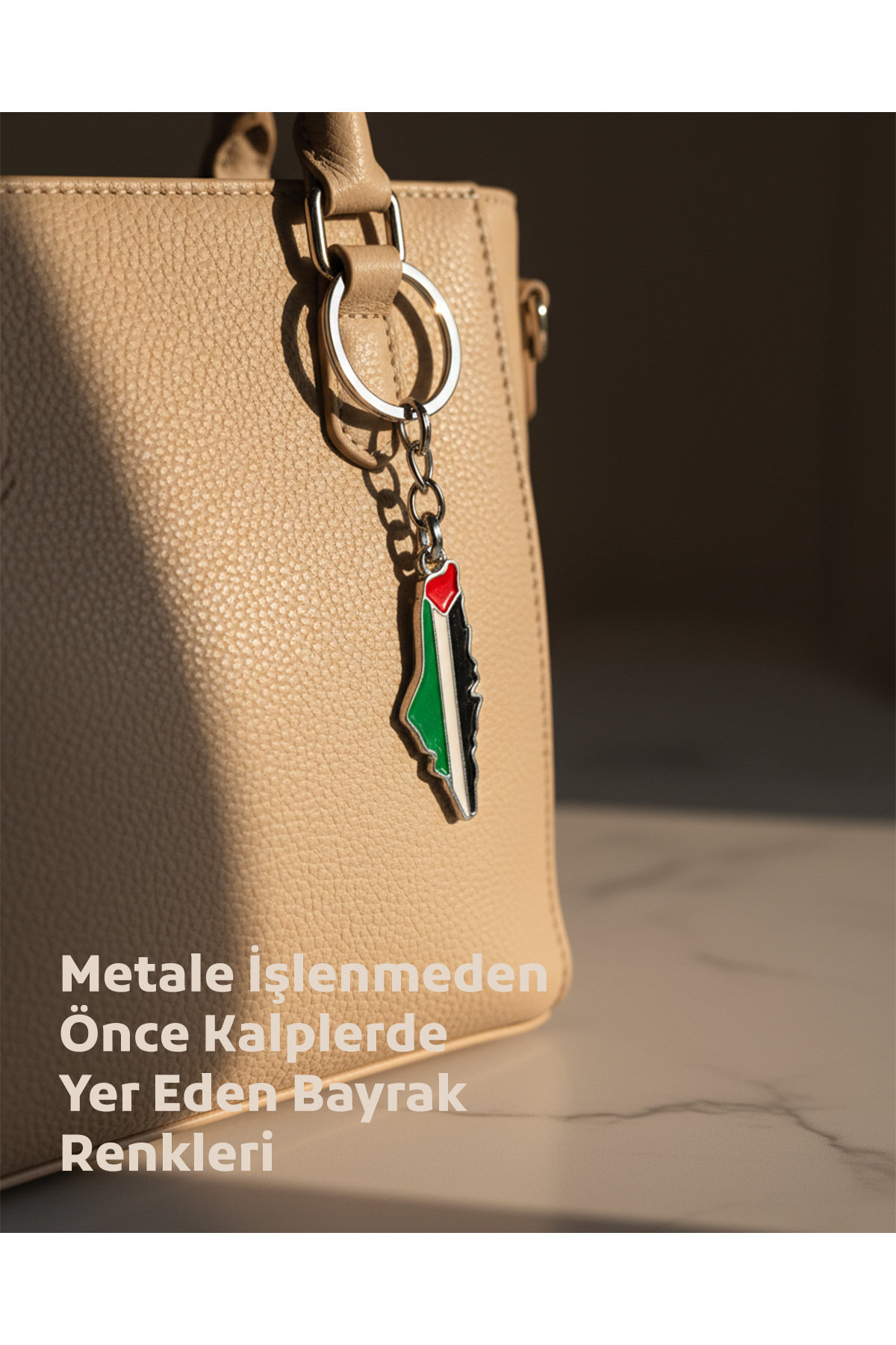 Filistin Renkli Haritası Anahtarlık Ünisex - Kalbinde Taşıyacağın Özel Bir Simge Yüksek kaliteli metalden üretilen bu zarif anahtarlık, Filistin haritasının canlı renkleriyle dikkat çekiyor.