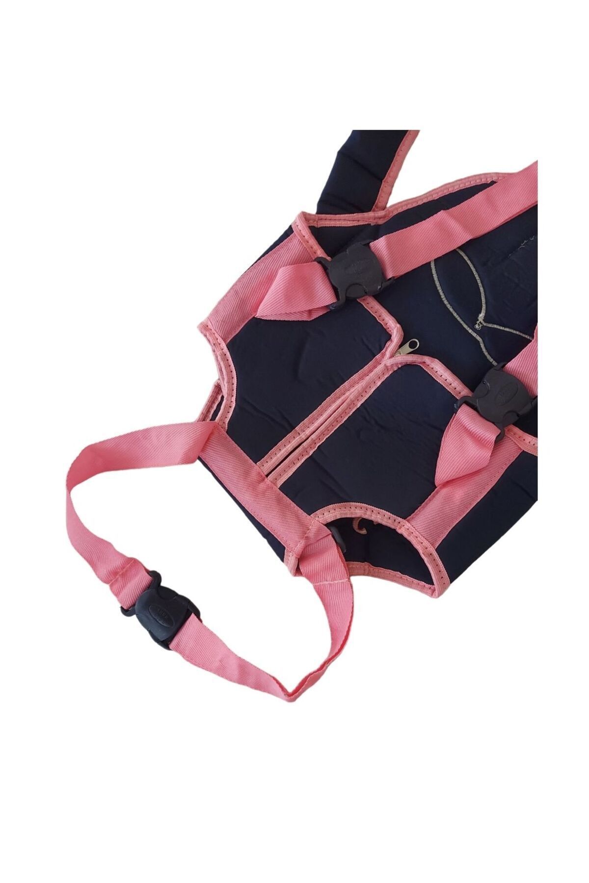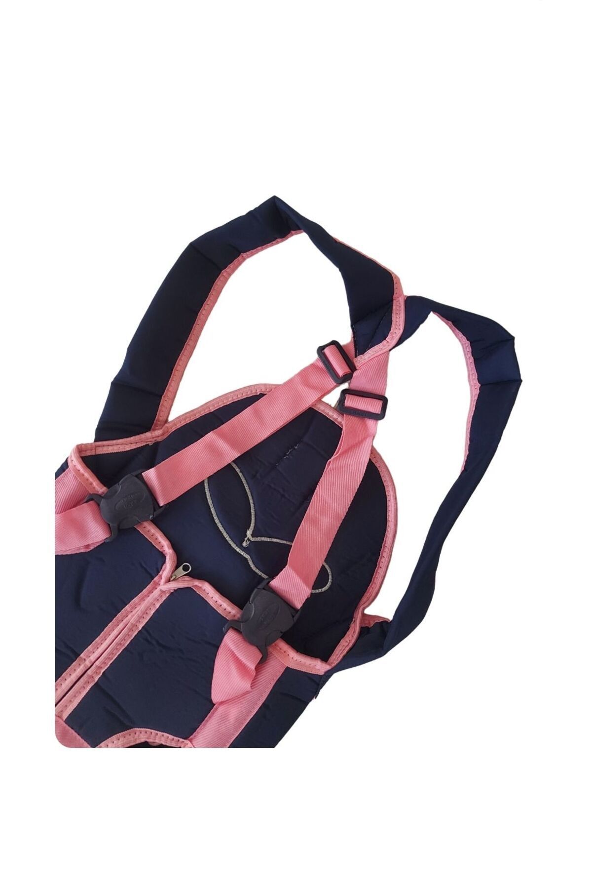 Bebeklerin konforu ve güvenliği düşünülerek tasarlanmış, belden bağlamalı kanguru taşıma sistemi
