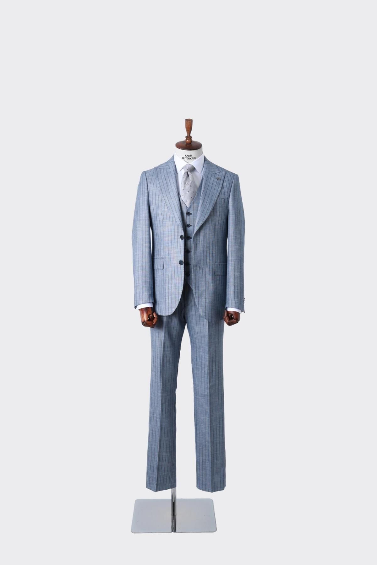 Kadir Büyükkaya'nın bu prestijli yelekli erkek takım elbisesi, yüksek kaliteli kumaş karışımı ve modern kesimi ile öne çıkar.