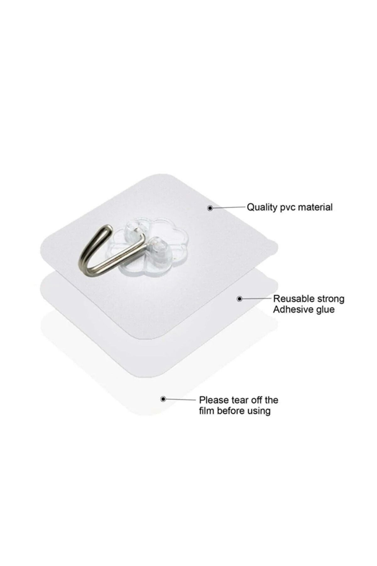 1 Adet 6x6 cm Şeffaf Güçlü Kendinden Yapışkanlı Kapı Duvar Askıları Ağır Yük Taşıma
