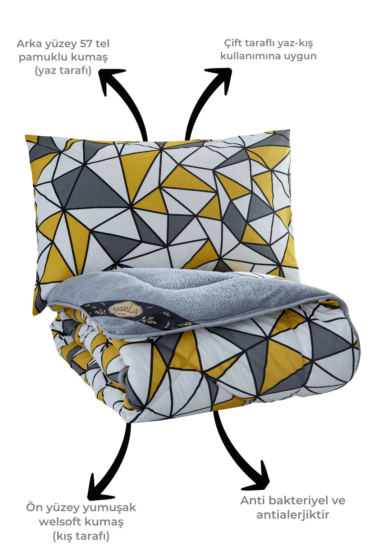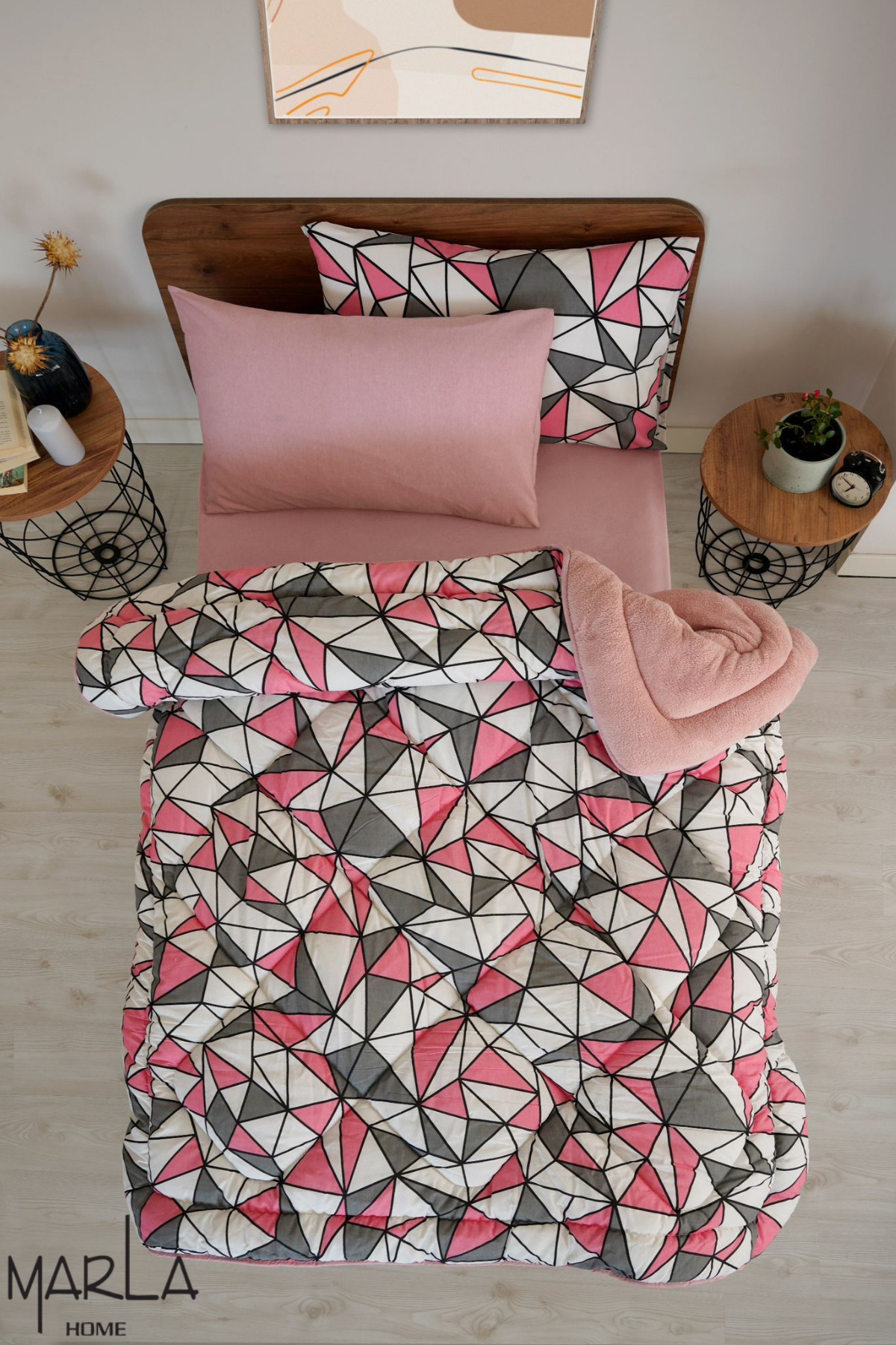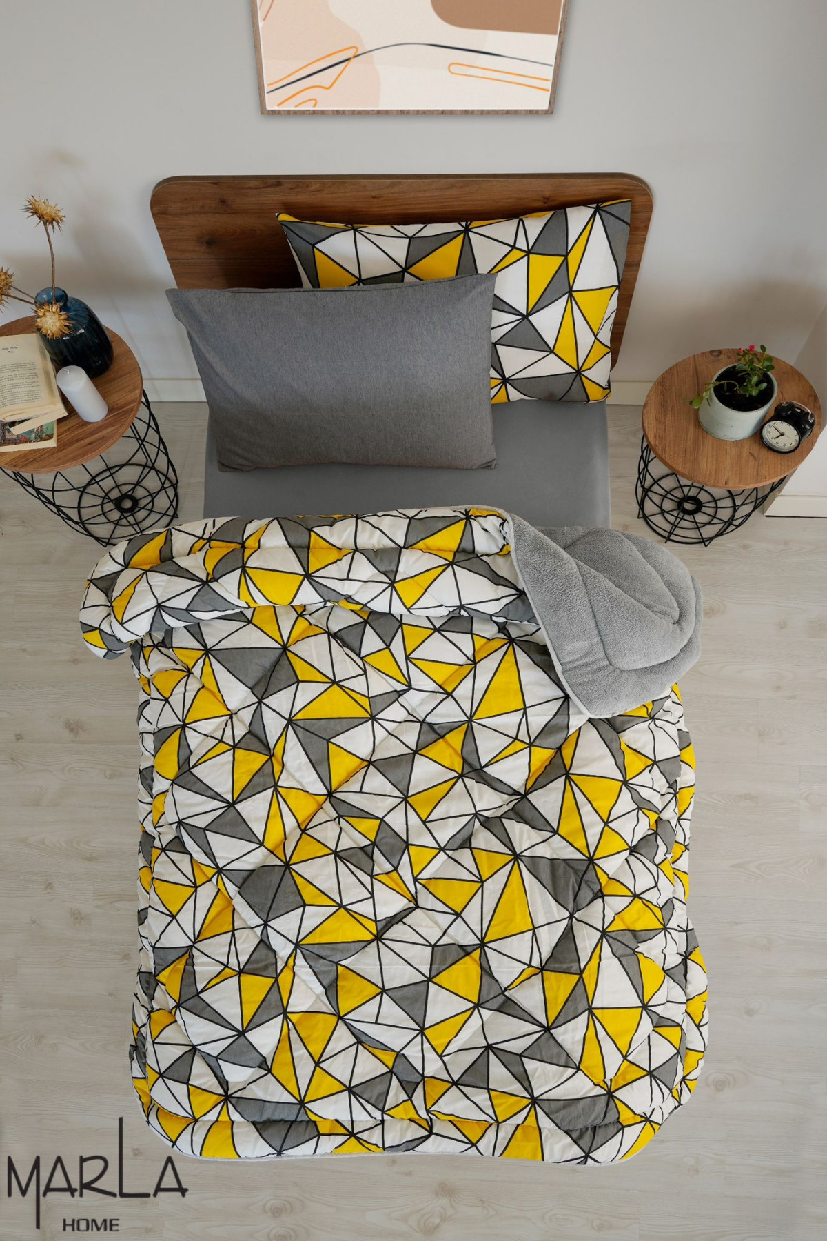 bir adet yorgan, lastikli çarşaf ve yastık kılıfından oluşur, böylece ihtiyacınız olan tüm parçalar tek pakette yer alır