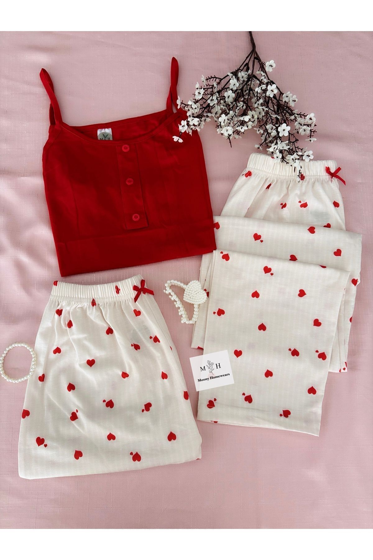 Üç parçadan oluşan set, hem üst hem de alt parçalarla tam bir uyum ve şıklık sunar