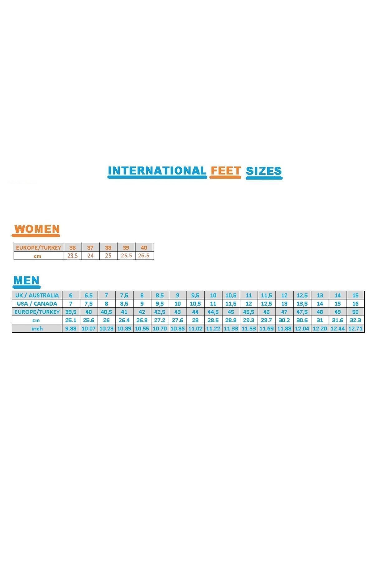 Doğru ayak numarası için görsellerde bulunan ayak ölçüsü cetvelini incelemenizi öneririz.