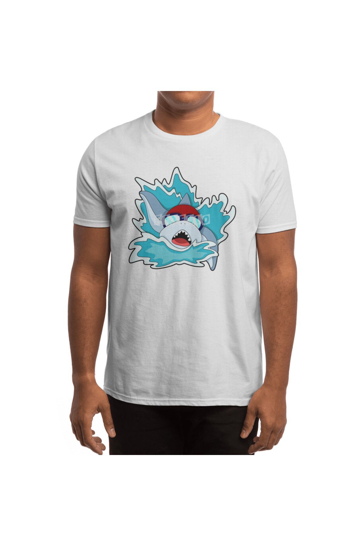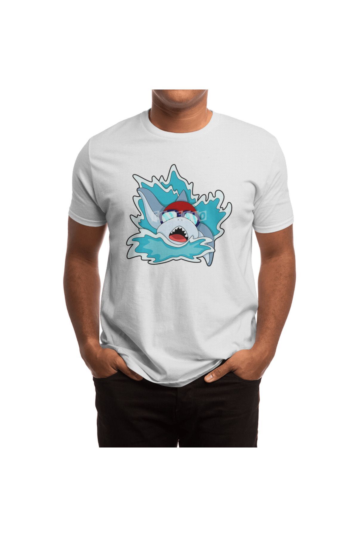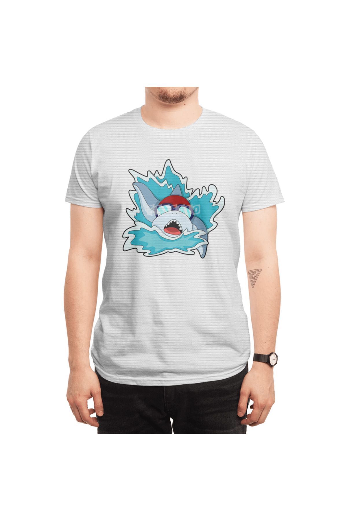 Shark At Swimming With Swimming Goggles , Erkek Tişört, Kadın Tişört, Unisex Beyaz T-shirt