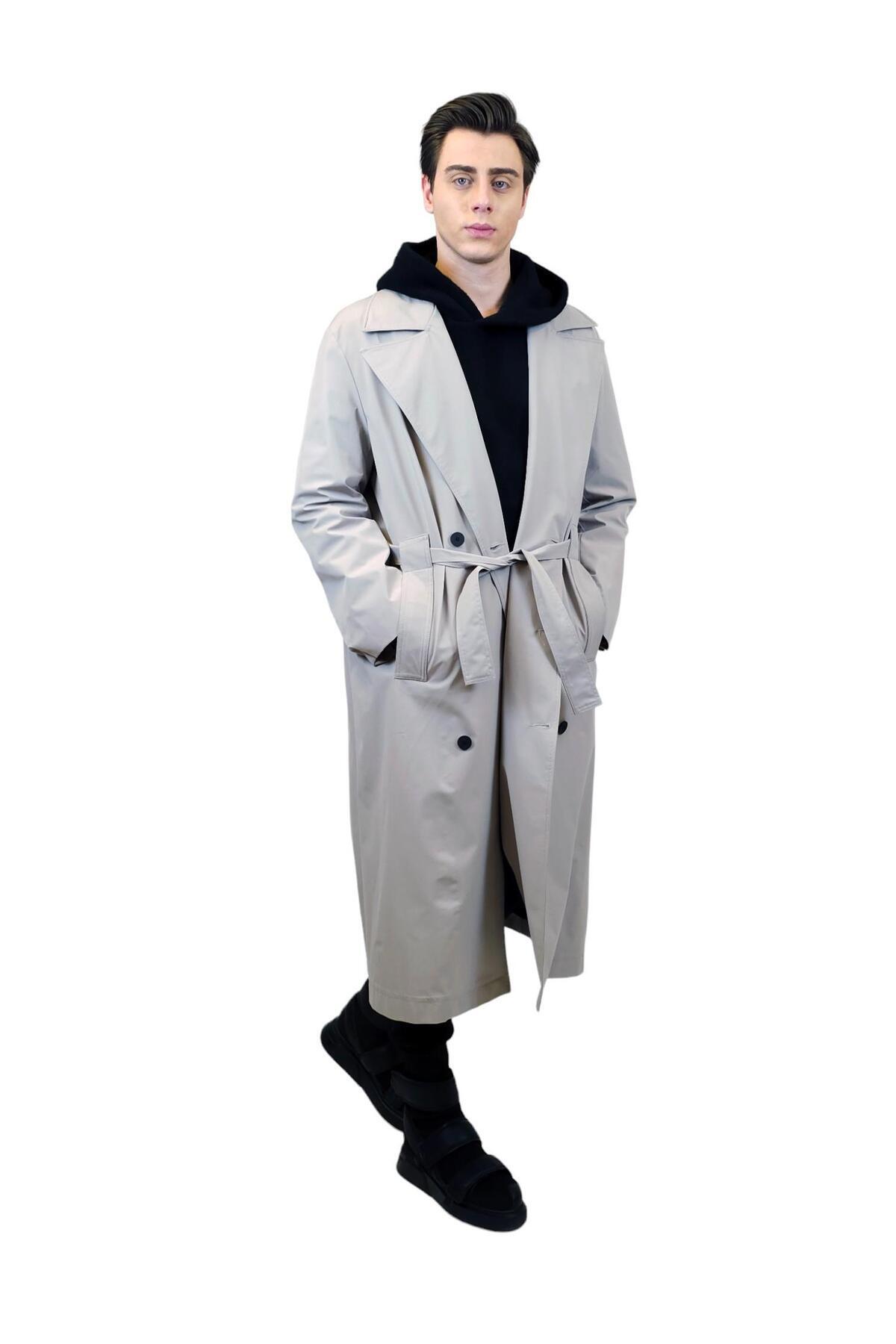 Ön kısmında şık bir düğme detayı bulunan trençkot, klasik ve zamansız bir tarz sunar