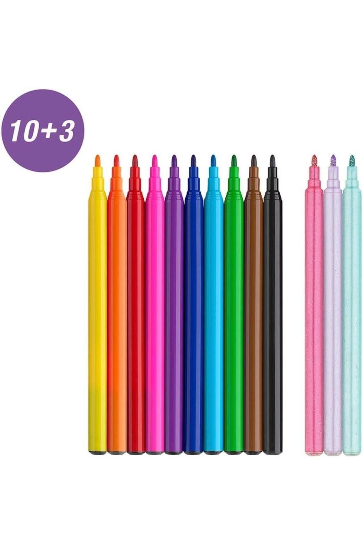 Unicorn Keçeli Kalem 13'lü Set,10 Renk + 3 Parıltılı Kalem,