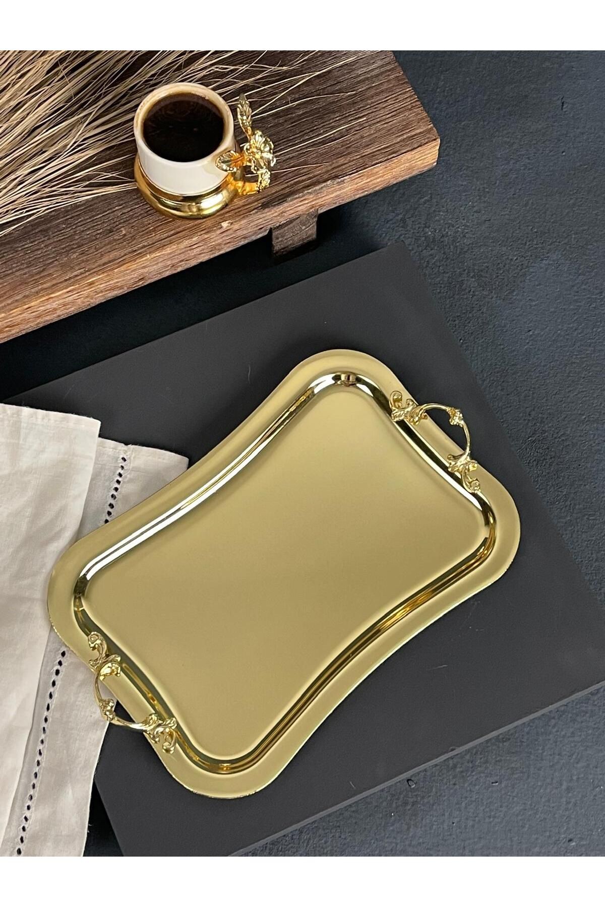 İkili Dikdörtgen Gold Tepsi Kavisli Kenar Titanyum Kaplama
