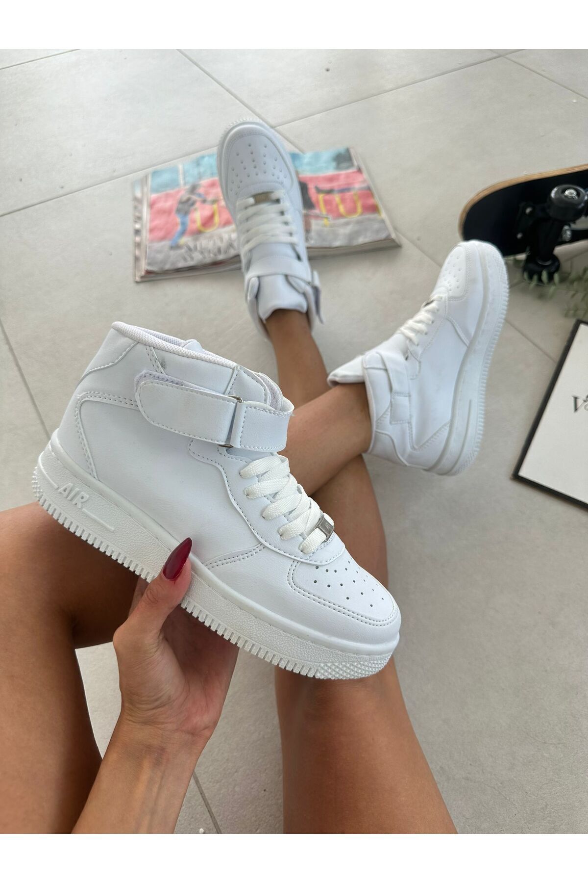 - Unisex tasarımı ile hem kadınlar hem de erkekler için uygun, beyaz bilekli spor ayakkabı.