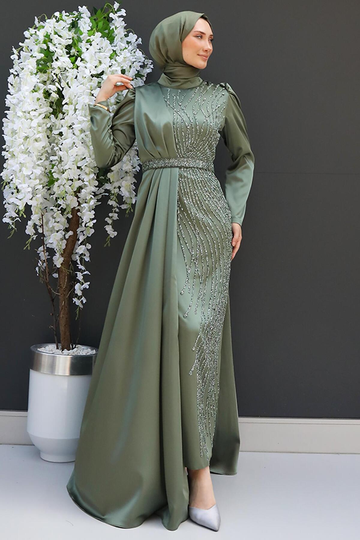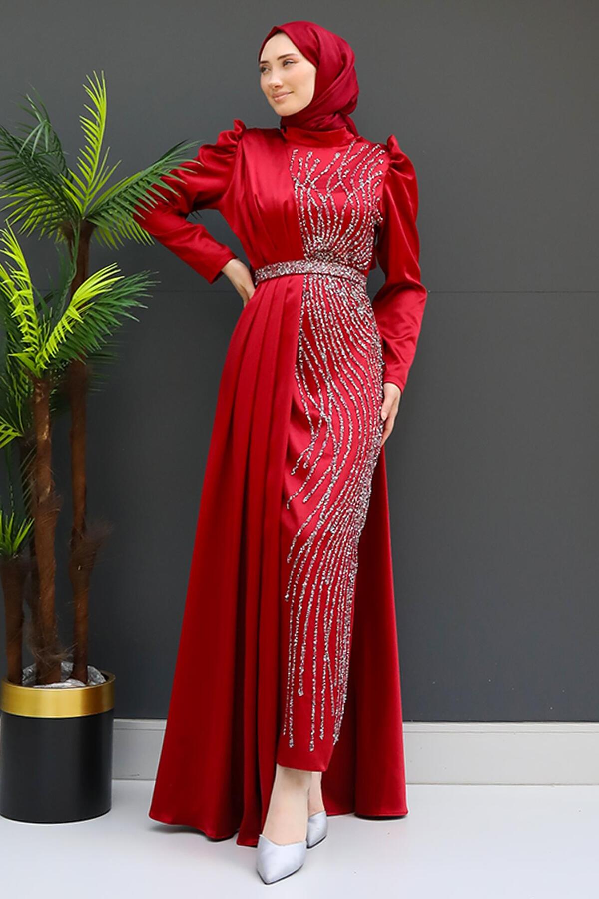 Dokuma kumaş yapısı sayesinde, uzun süreli kullanımlarda bile formunu koruyan ve rahat bir deneyim sunan tesettür abiye