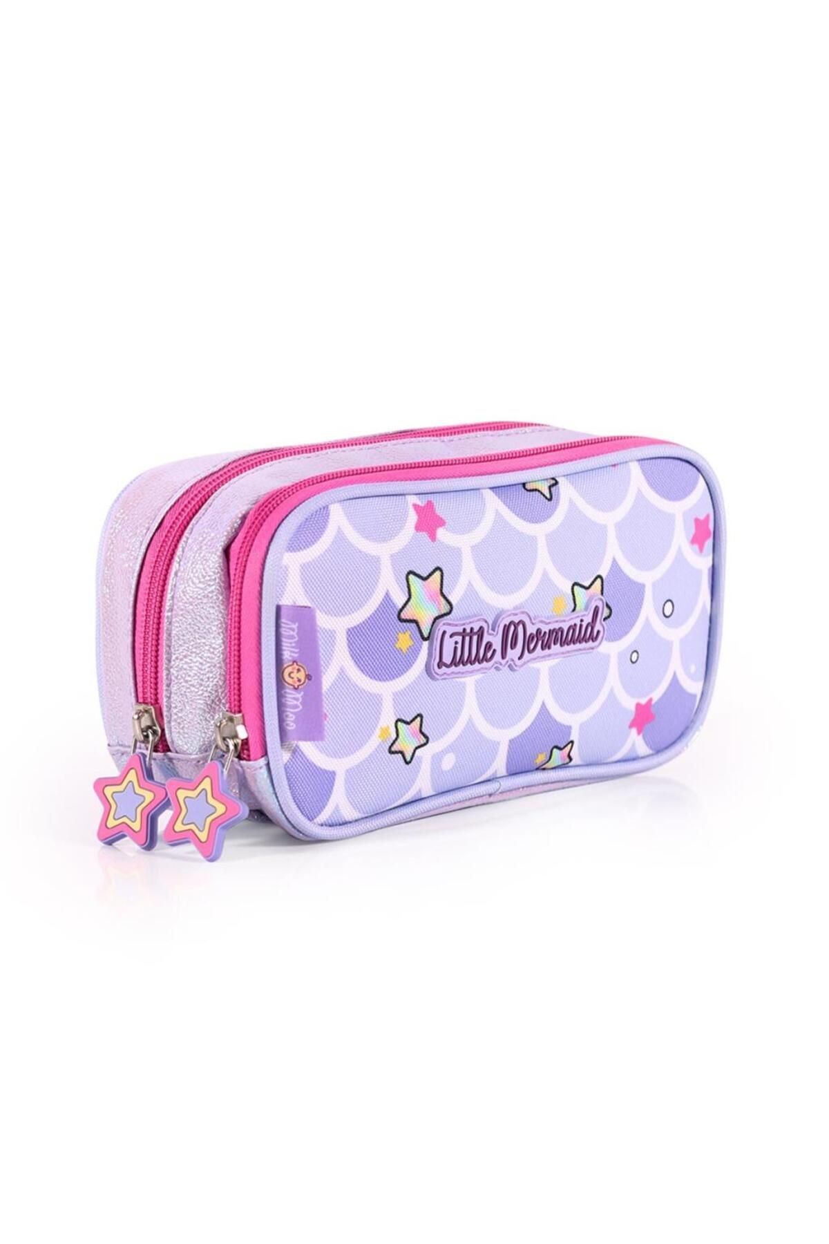 Kalem Kutusu Özellikleri: 2 farklı fermuarlı bölme Fermuarlarda yıldız silikon elcik detayı Ön ve arka yüzey deniz kızı baskı desenli, diğer yüzeyler parlak suni deri Önde silikon kabartmalı Little Mermaid yazı Çantayı kişiselleştirmek için isim etiketi mevcut Pırıltılı Deniz Kızı sırt çantası ve ısı yalıtımlı beslenme çantası ile eğlenceli bir kombin oluşturur.
