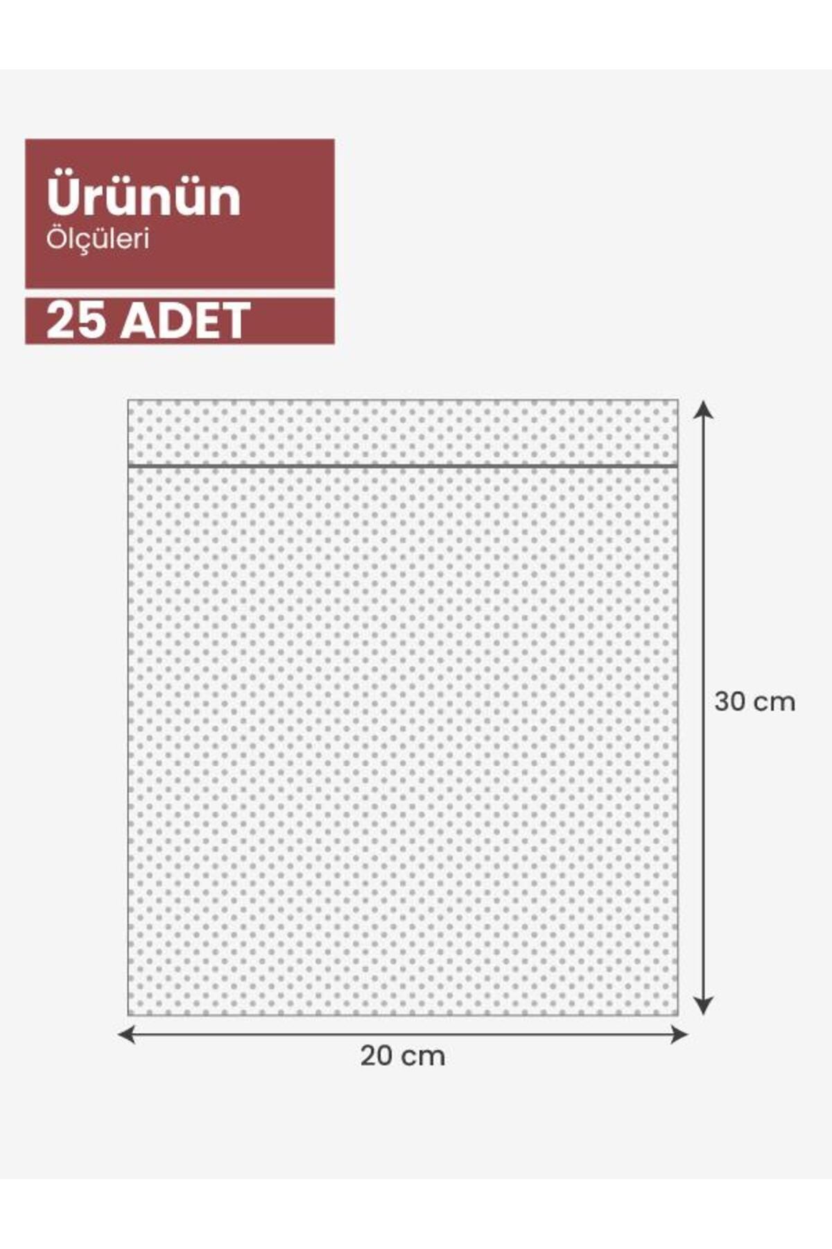 Gofrajlı / tırtıklı vakum poşeti 20x25 cm ölçülerindedir.