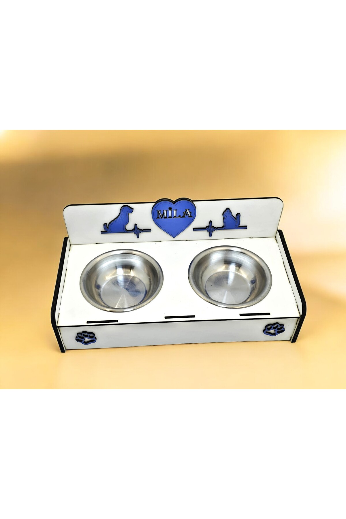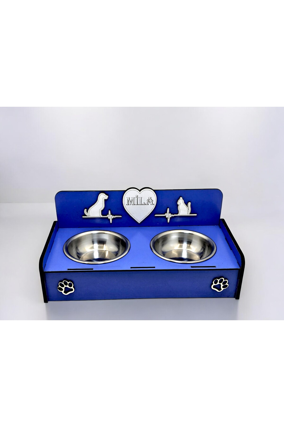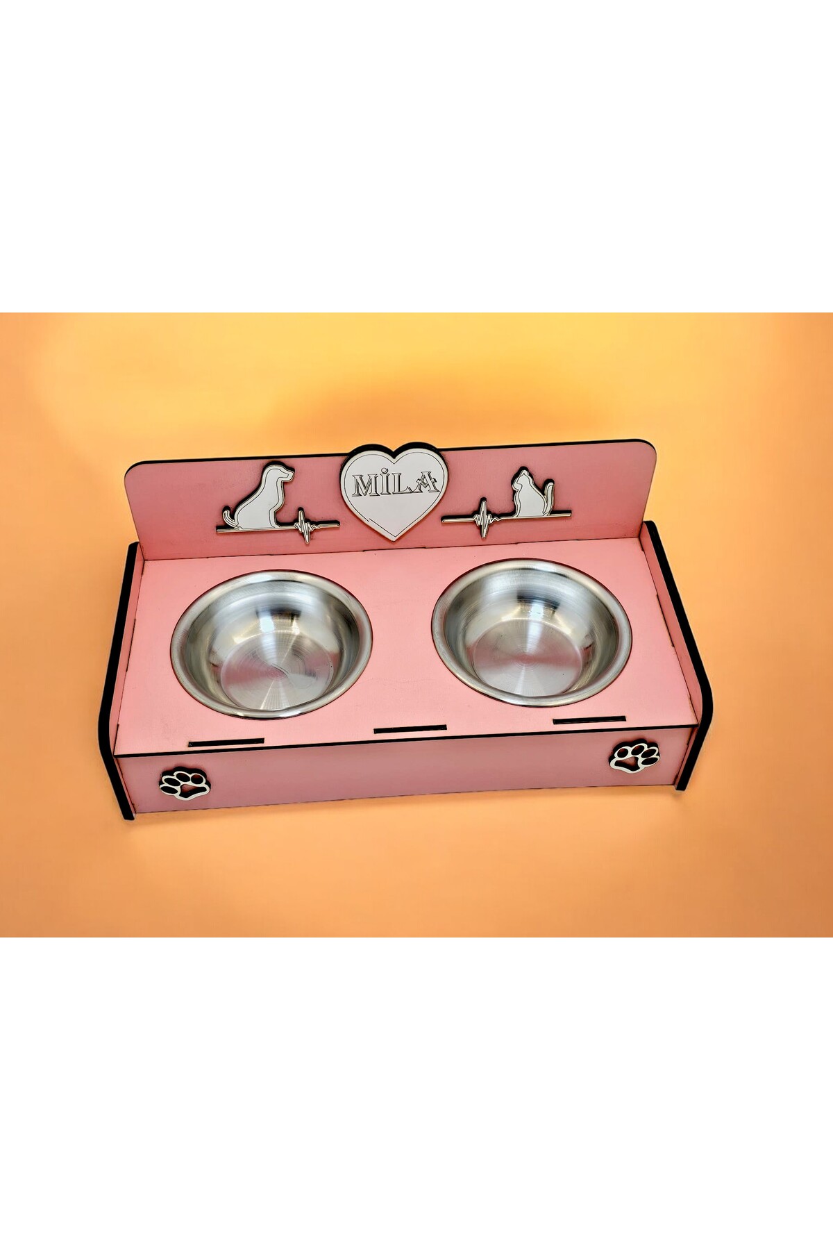Emse Kedi Köpek Doğal Ahşap Çelik Mama Su kabı İsim Yazılabilir Hediyelik Özelleştirilebilir