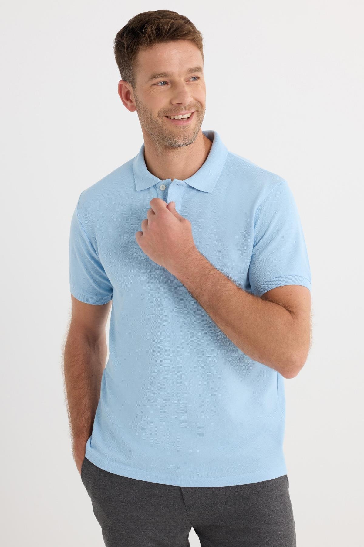 Erkek Slim Fit Dar Kesim Pamuklu Yumuşak Dokulu Serin Tutan Kumaş Düz Pike Gri Polo Yaka Tişört