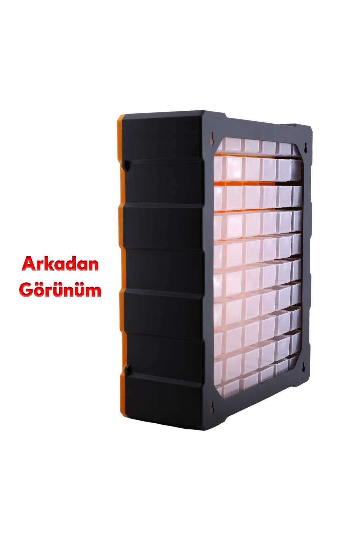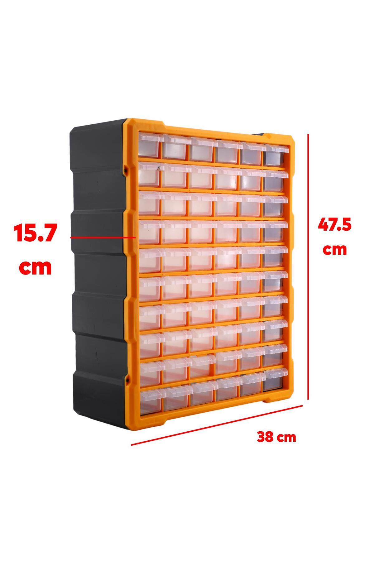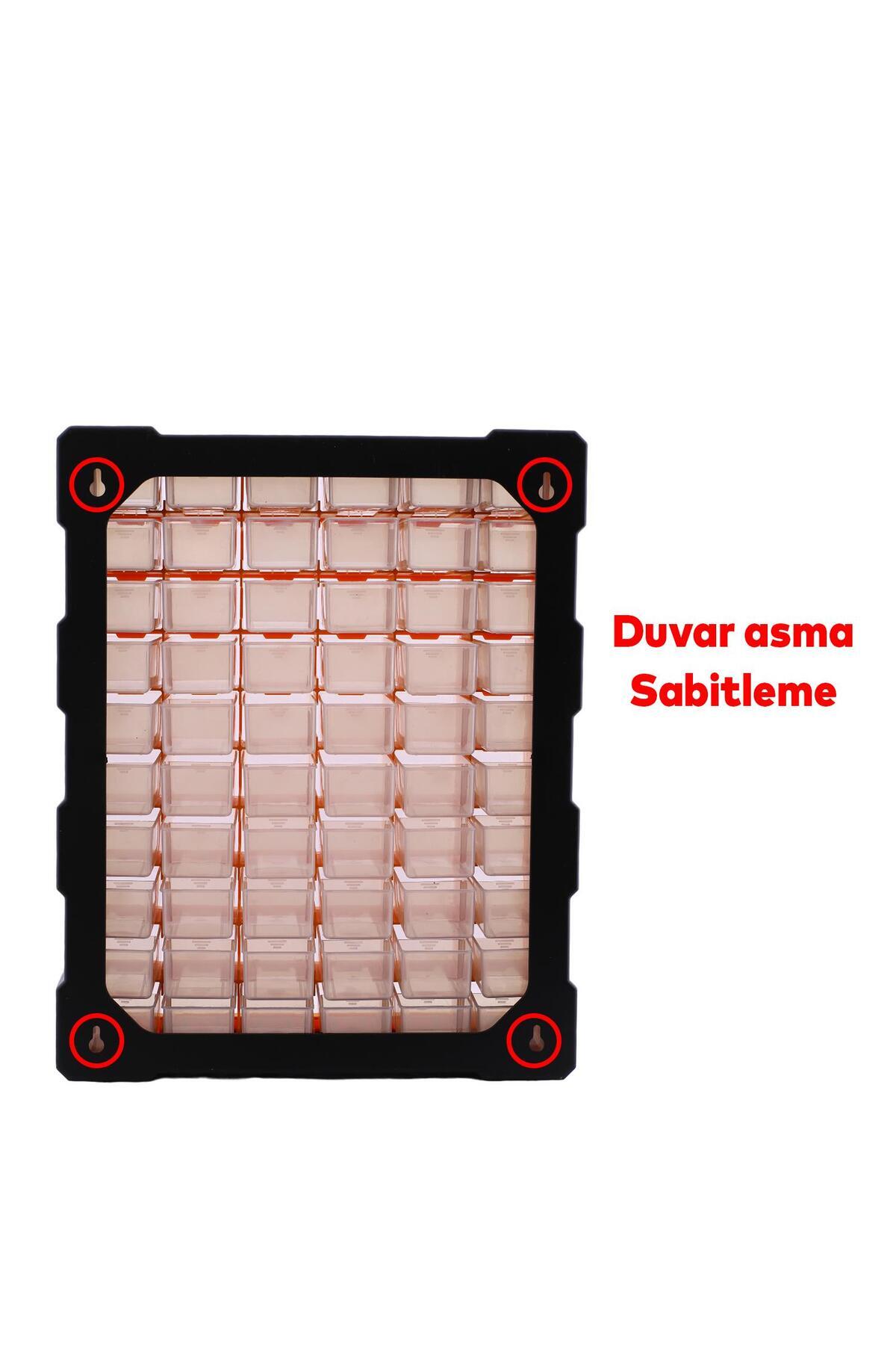 Monoblok çekmece yapısı sayesinde vidalar, dübeller ve civatalar gibi farklı boyutlardaki parçalar için ayrı bölmeler sunar