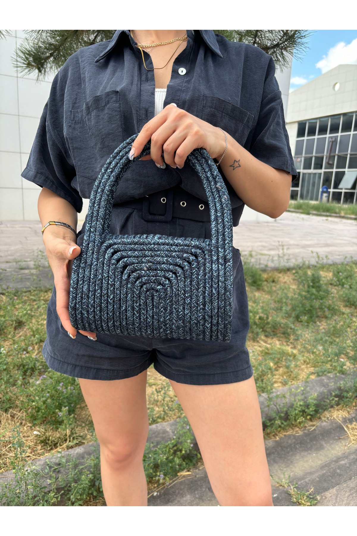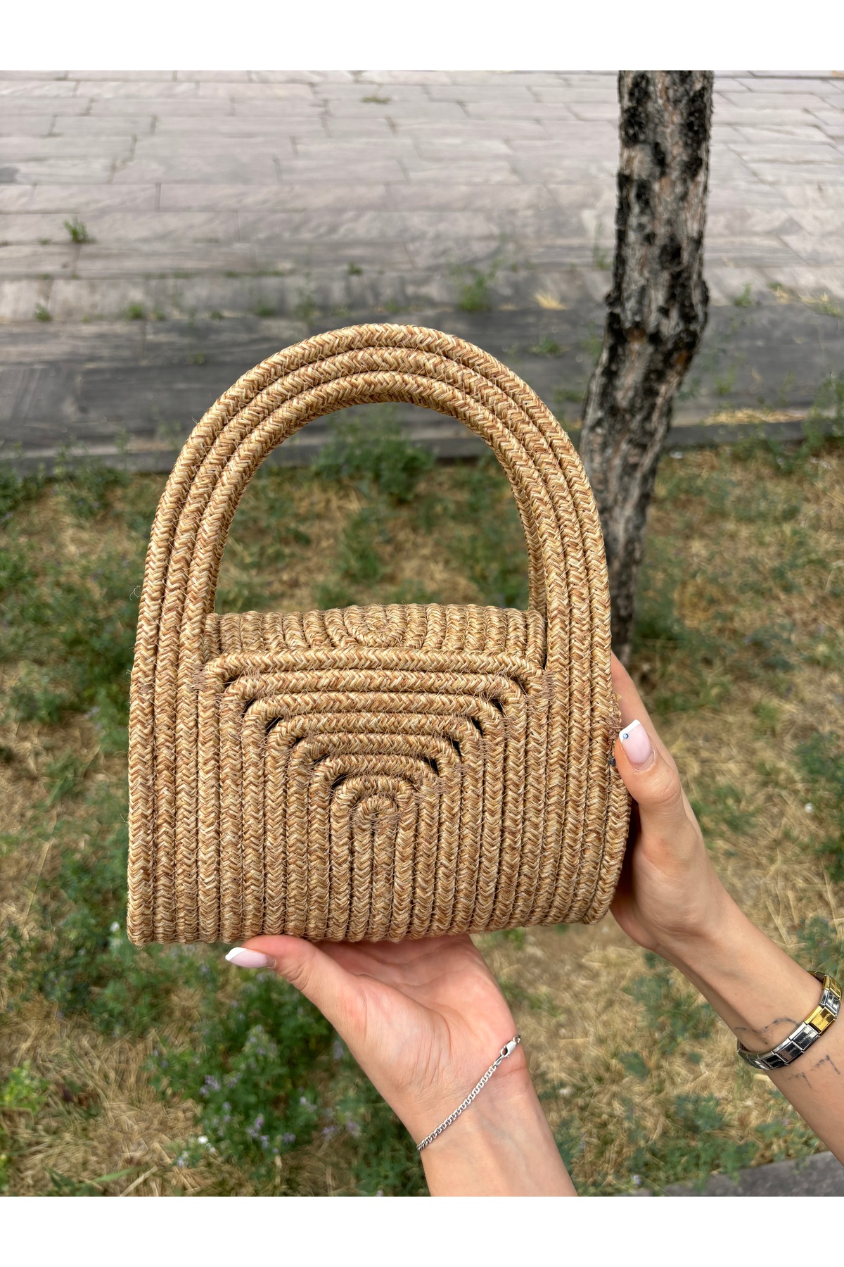 Hasır materyali ile doğal dokunuşu hissettiren bu clutch çanta, yazın sıcak günlerinde serinlik ve konfor sunar