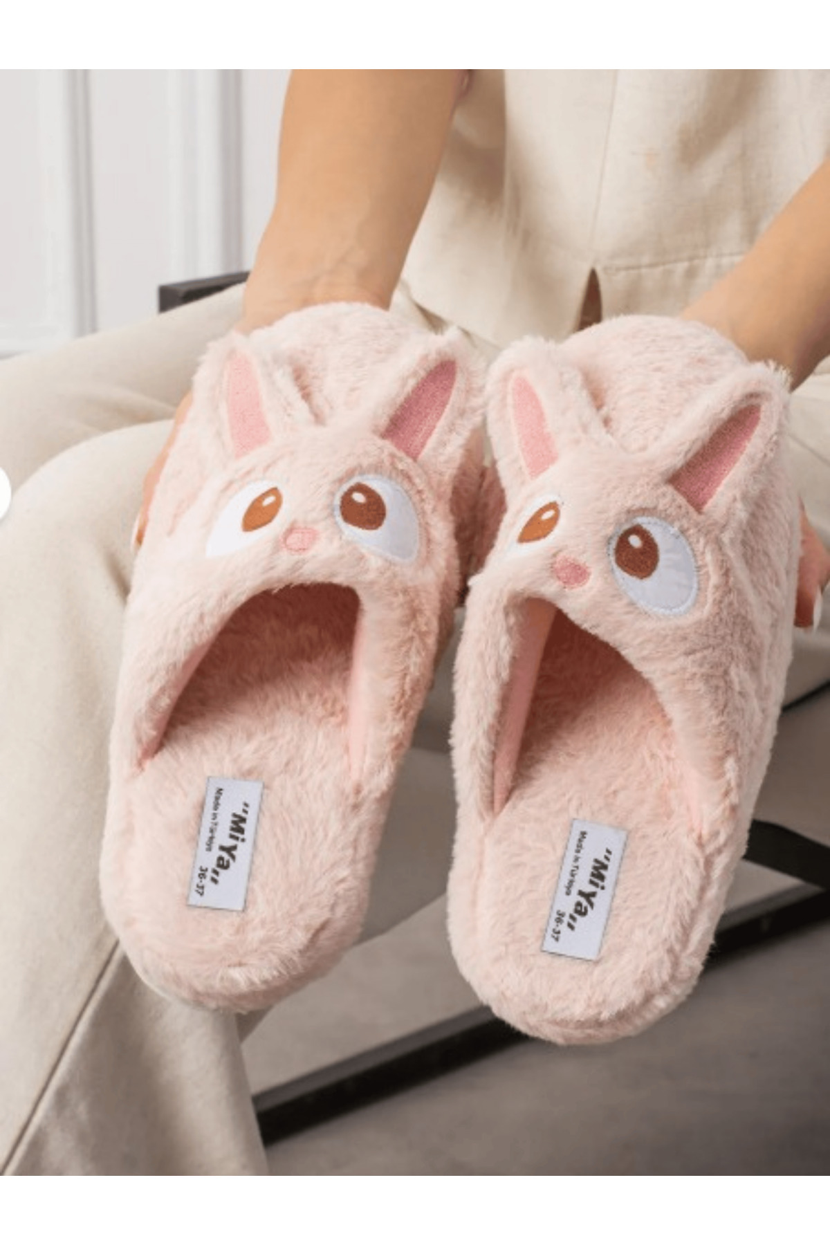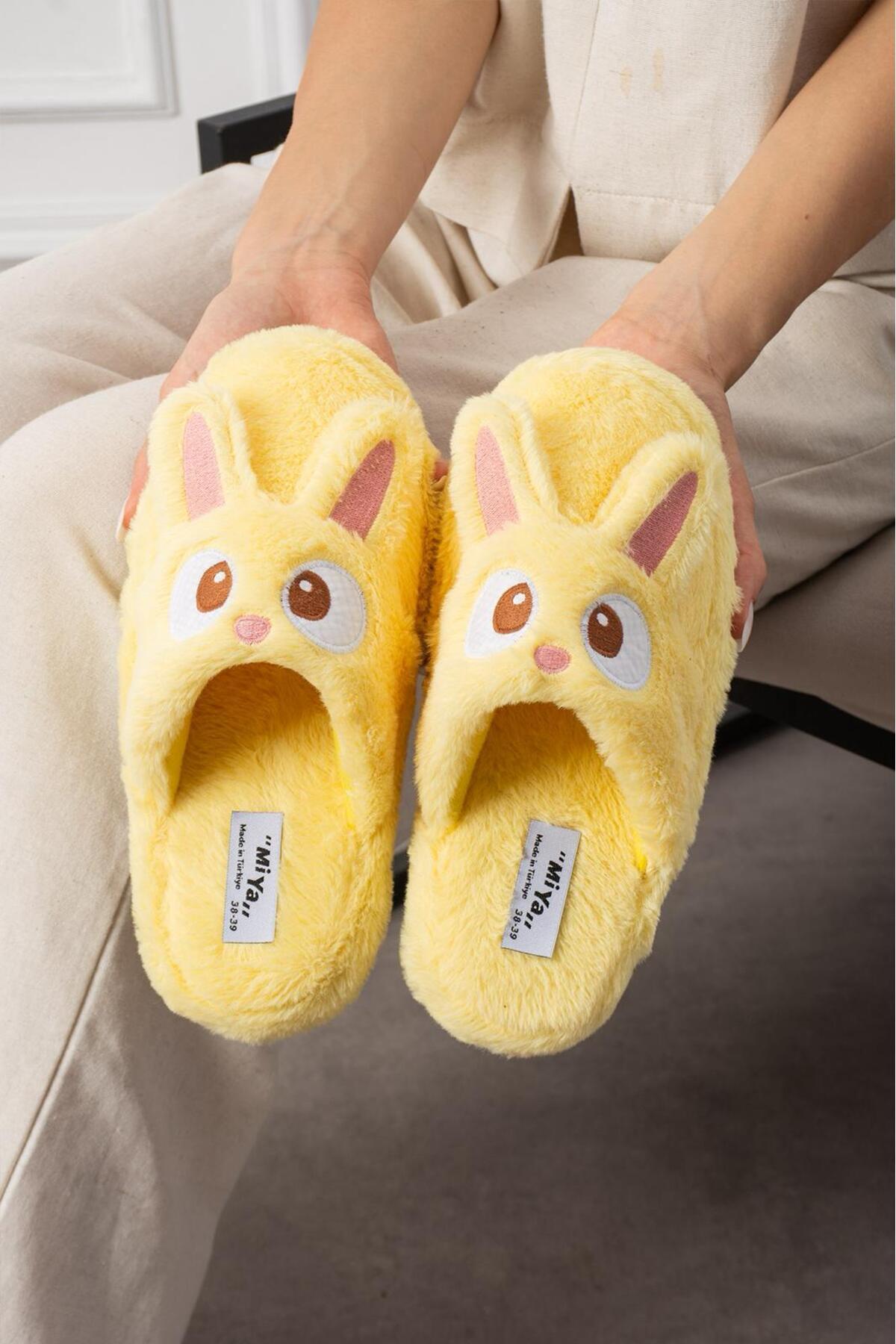Kadın Tavşan Figürlü Sessiz Taban Peluş Ev Terliği