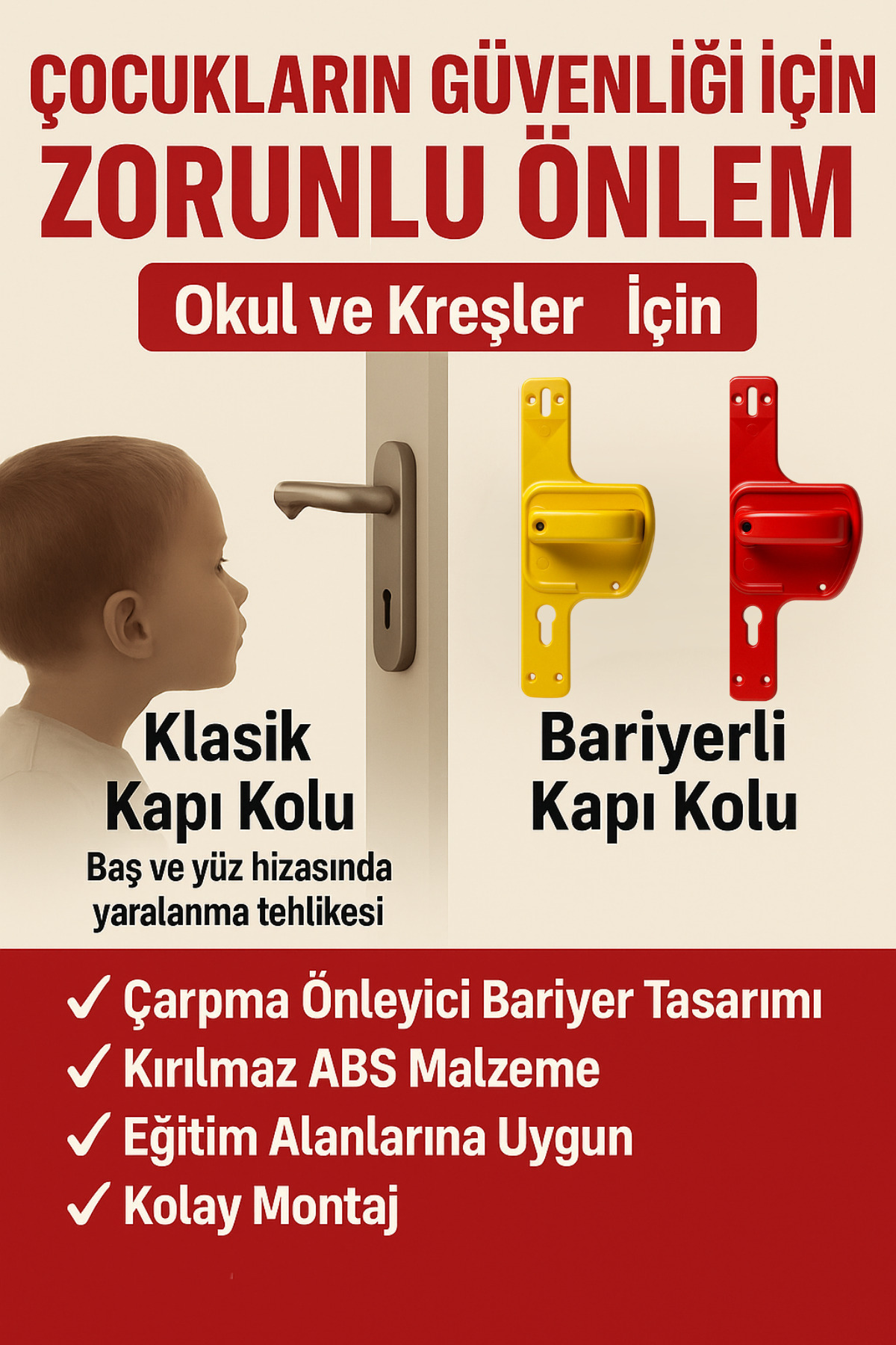 Okul sınıflarının güvenliğini artırmak amacıyla tasarlanmış olan bu kapı kolu, dayanıklı ve kırılmaz özellikleriyle dikkat çeker.
