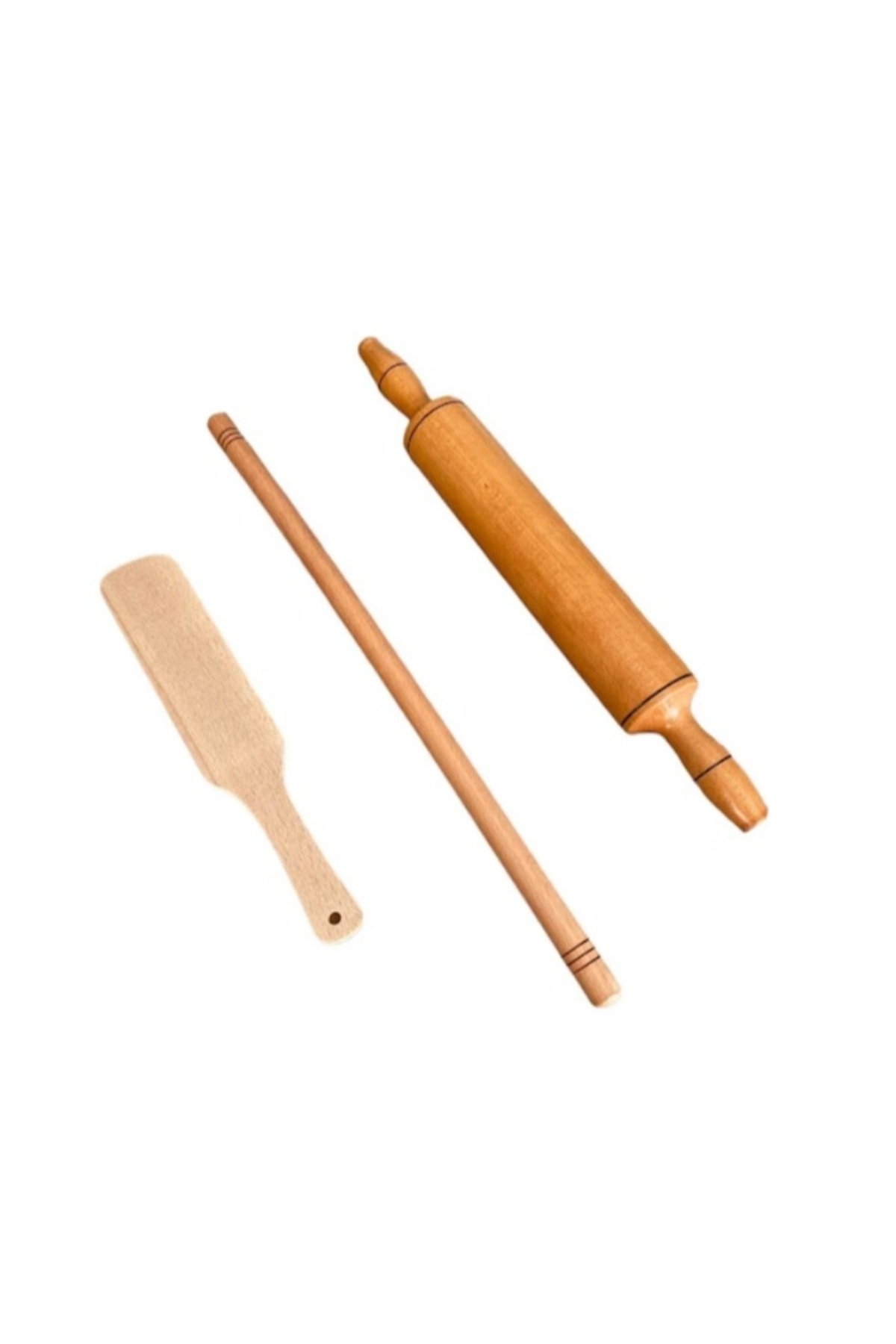 Oklava Merdane Seti , 3 Parça Ahşap Set , Oklava Merdane ve Çevirgeç , Hamur İşleri Seti