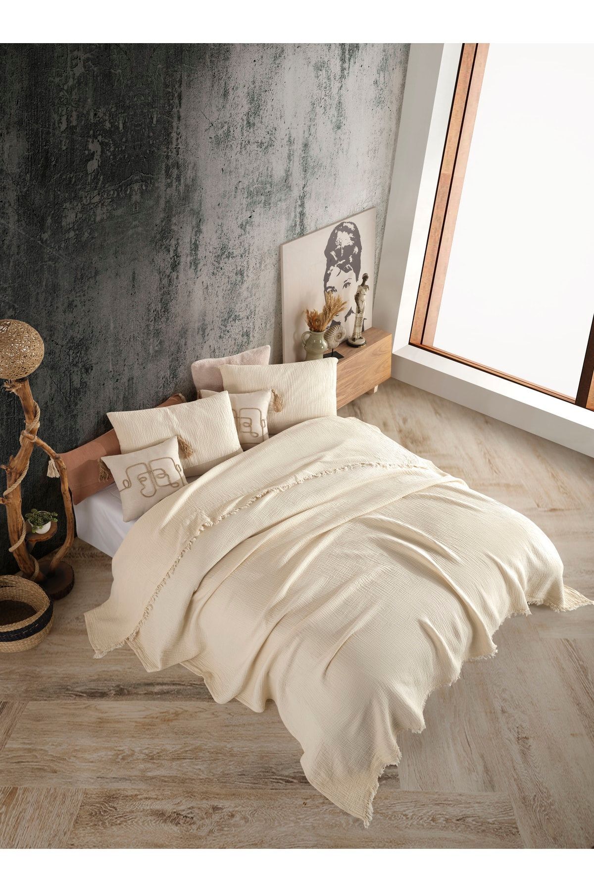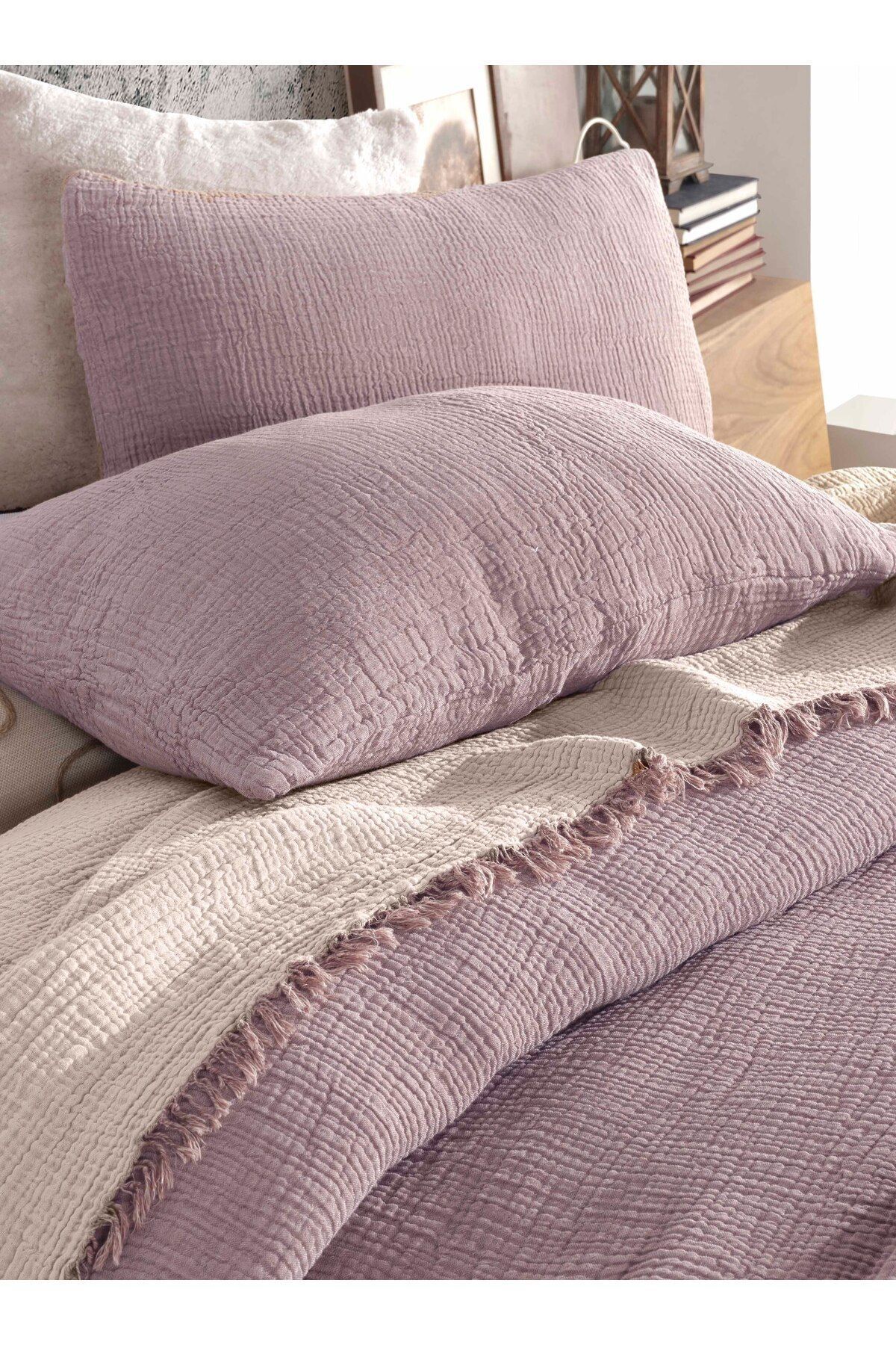 Müslin yatak örtülerimiz krınkıl yapısı sayesinde ütüleme gerektirmez .