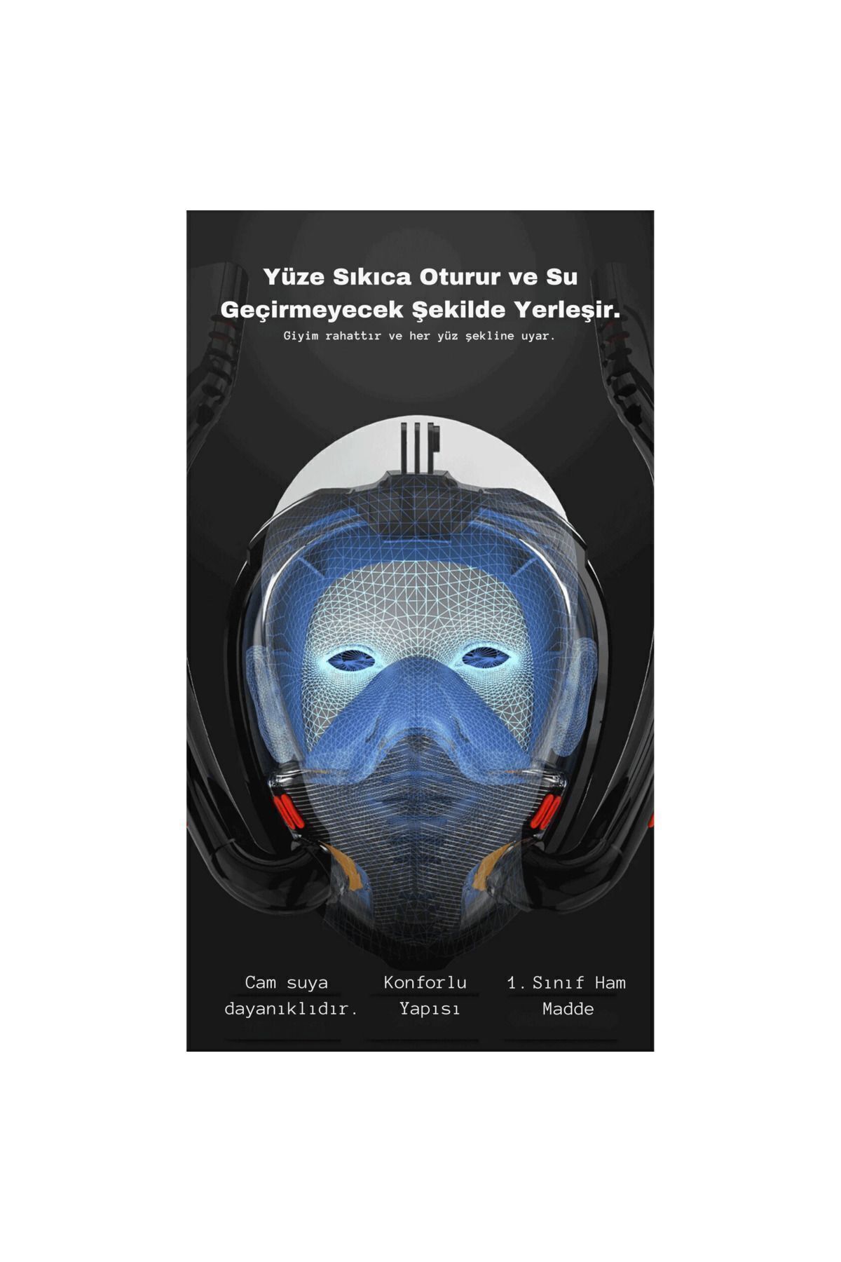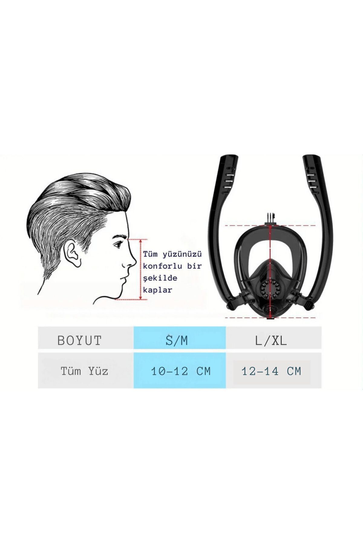 Çift Tüp Silikon Şnorkel Tam Yüz Dalış Maskesi Fullface Buğu Önceliyici Anti Sızıntı Gopro