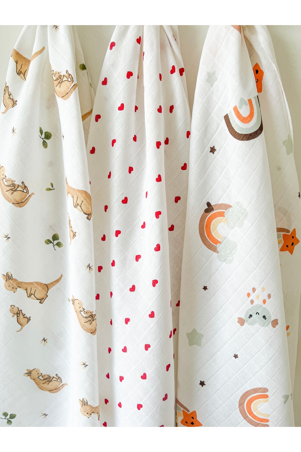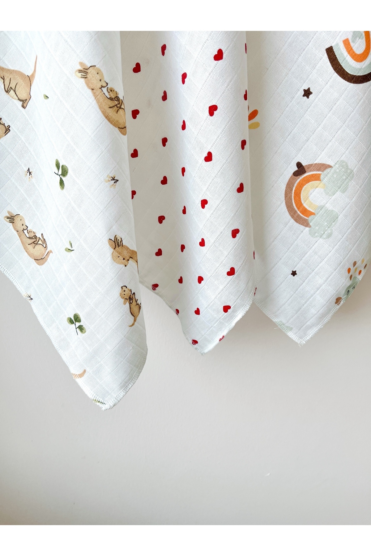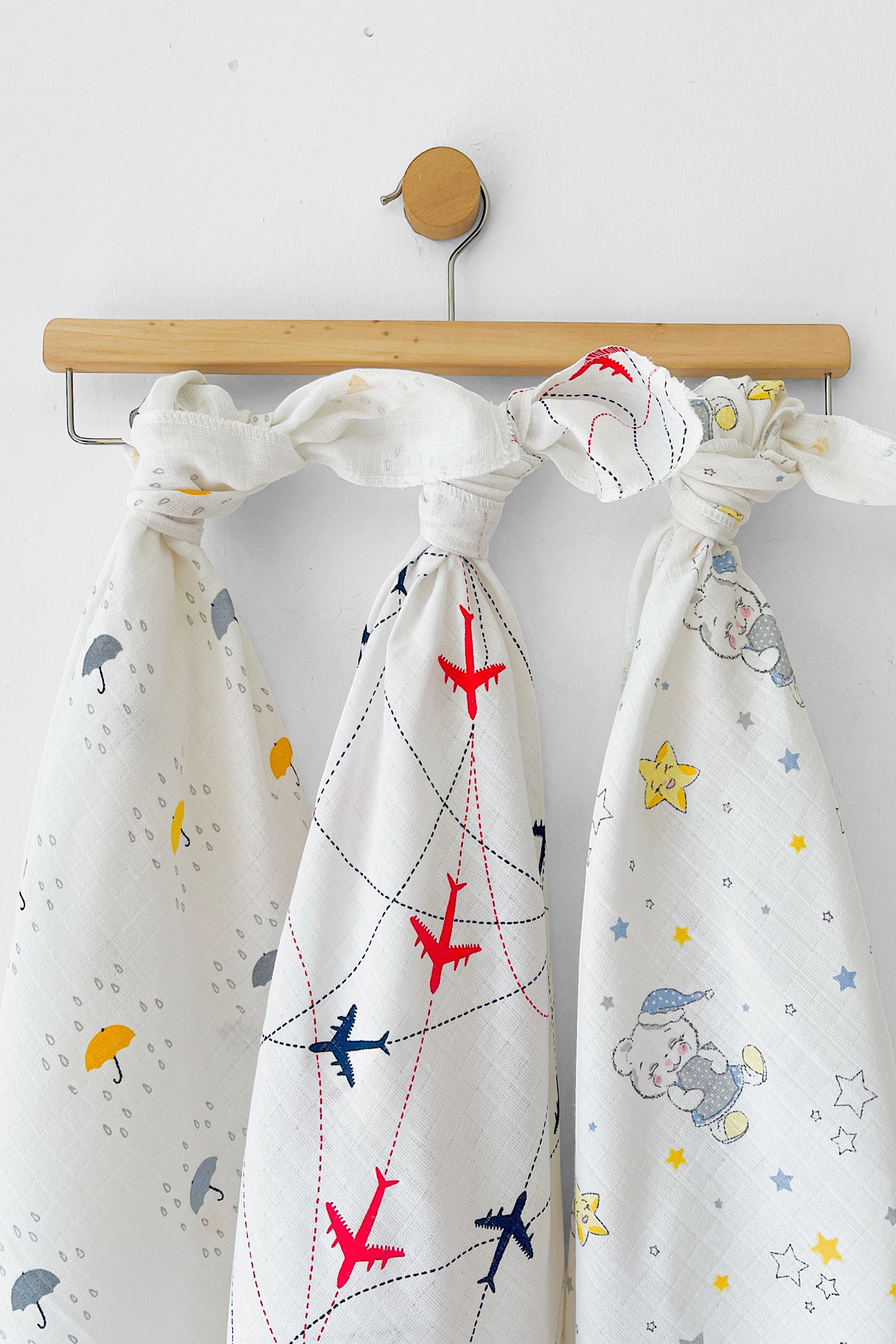 Çok Amaçlı Müslin Örtü 3’lü Set, Müslin Yenidoğan Bebek Battaniyesi, %100 Pamuk Müslin Bez, 80*90 cm