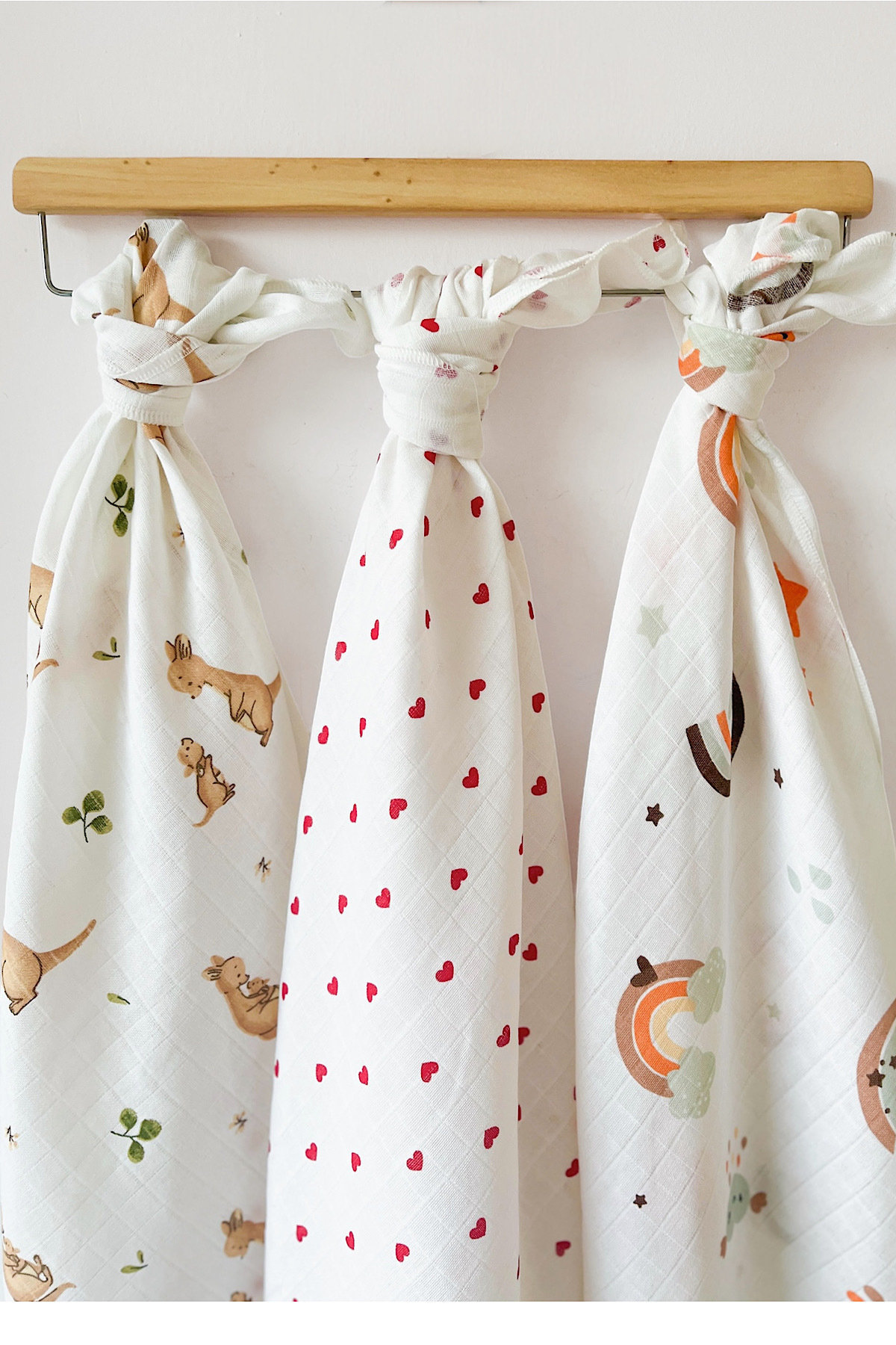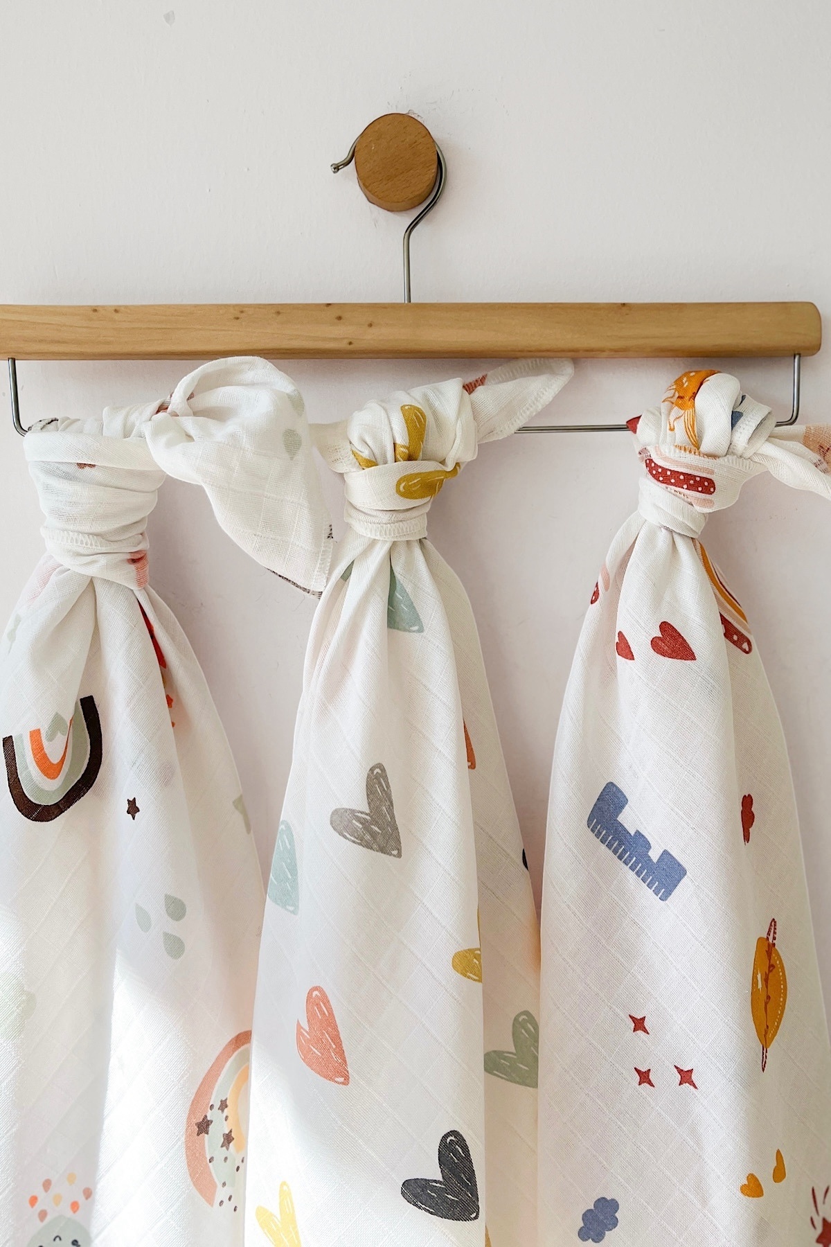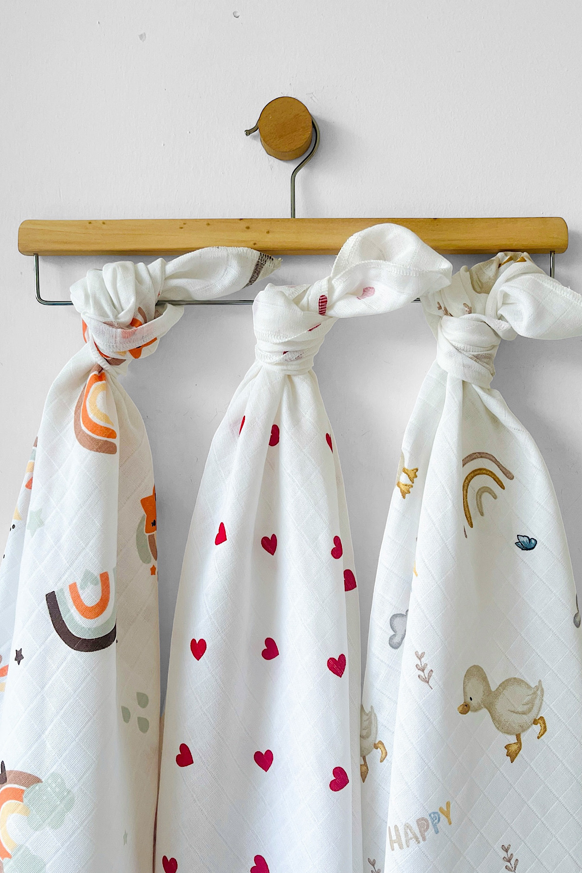 Çok Amaçlı Müslin Örtü 3’lü Set, Müslin Yenidoğan Bebek Battaniyesi, %100 Pamuk Müslin Bez, 80*90 cm