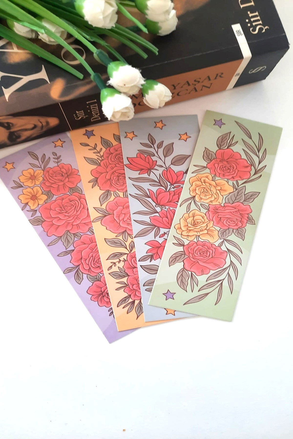 12'li Soft Çiçek Serisi Kitap Ayracı - Kalın Kuşe - 4,5x15cm - Konsept Hediyelikler - Yüksek Kalite