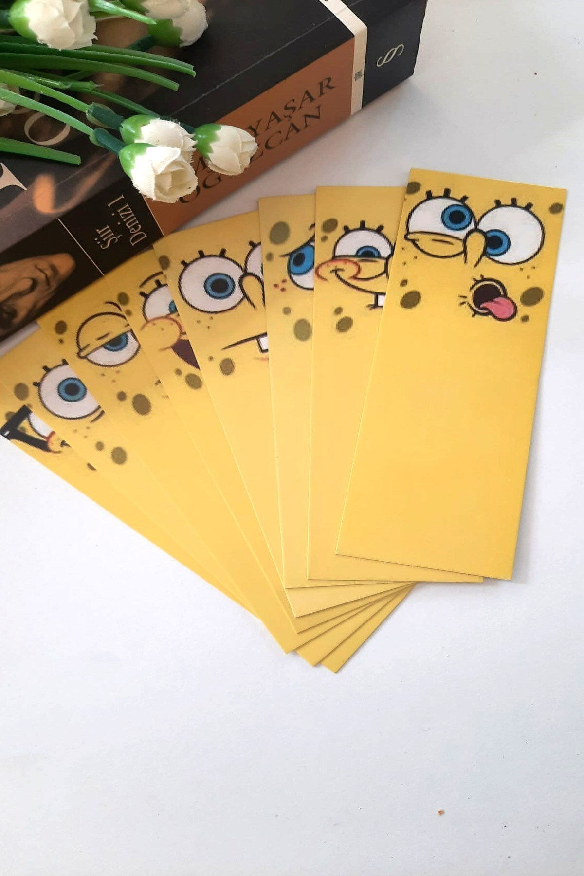 8'li Sünger Bob's Serisi Kitap Ayracı - Kalın Kuşe - 4,5x15cm - Okul Hediye - Öğrenci Hediye