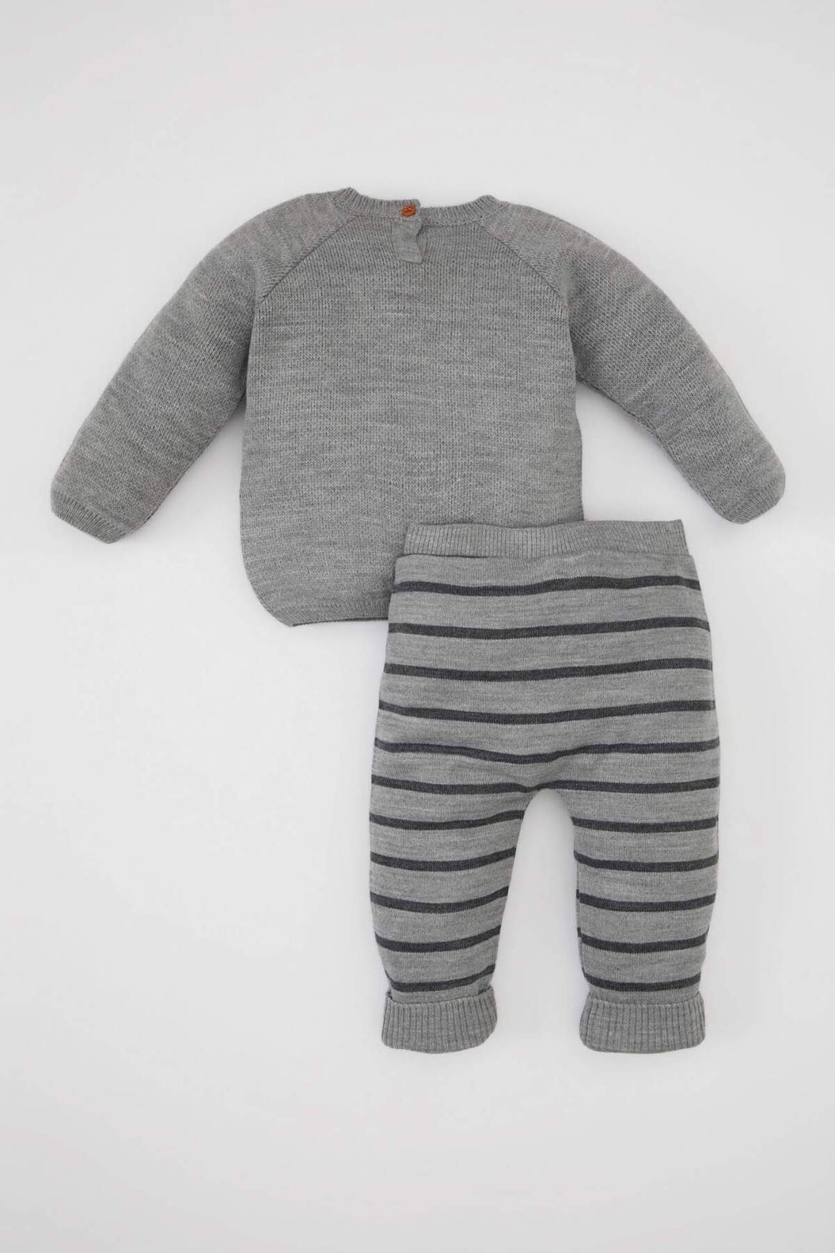 Erkek Bebek Uzun Kollu Baskılı Triko Kazak Çizgili Alt 2'li Takım, şıklığı ve rahatlığı bir arada sunar.