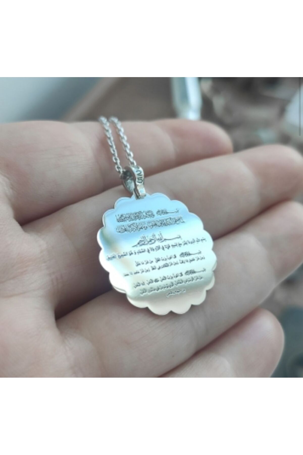 Ayetel Kürsi, Felak ve Nas surelerinden oluşan koruma duası ile zenginleştirilmiş, manevi değer taşıyan bir kolyedir