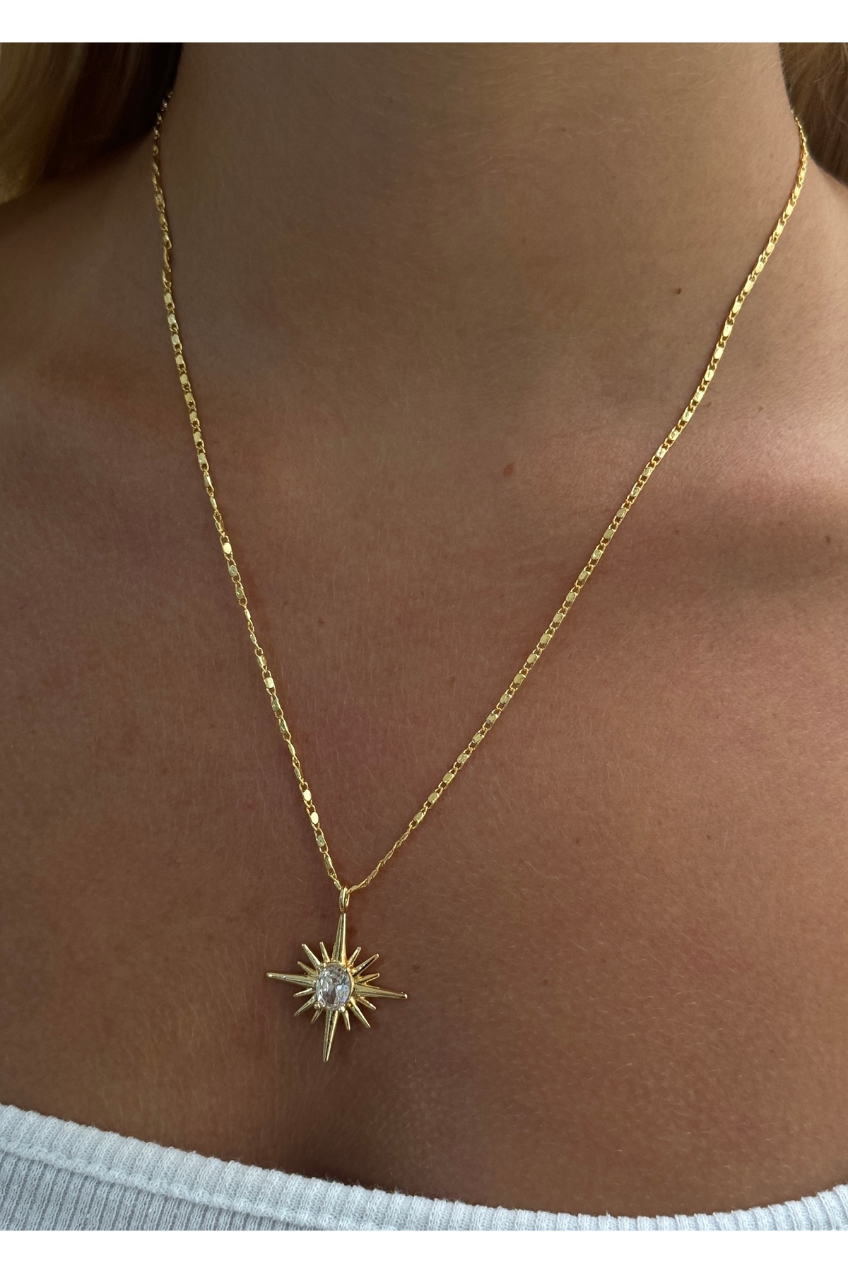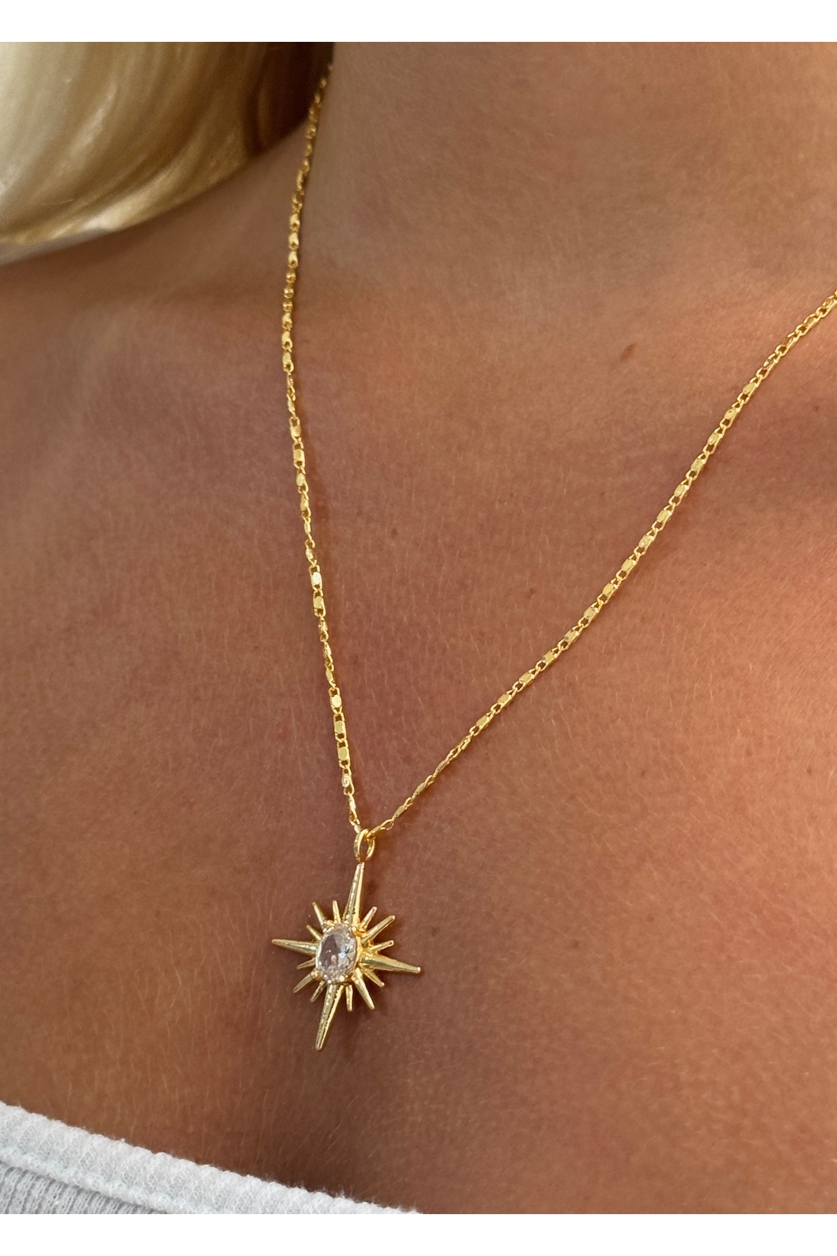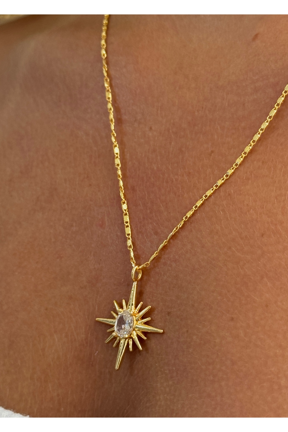 - Göz alıcı Kuzey Yıldızı motifleriyle süslenmiş bu kolye, hem özel günlerde hem de günlük kombinlerinizde fark yaratmanızı sağlar
