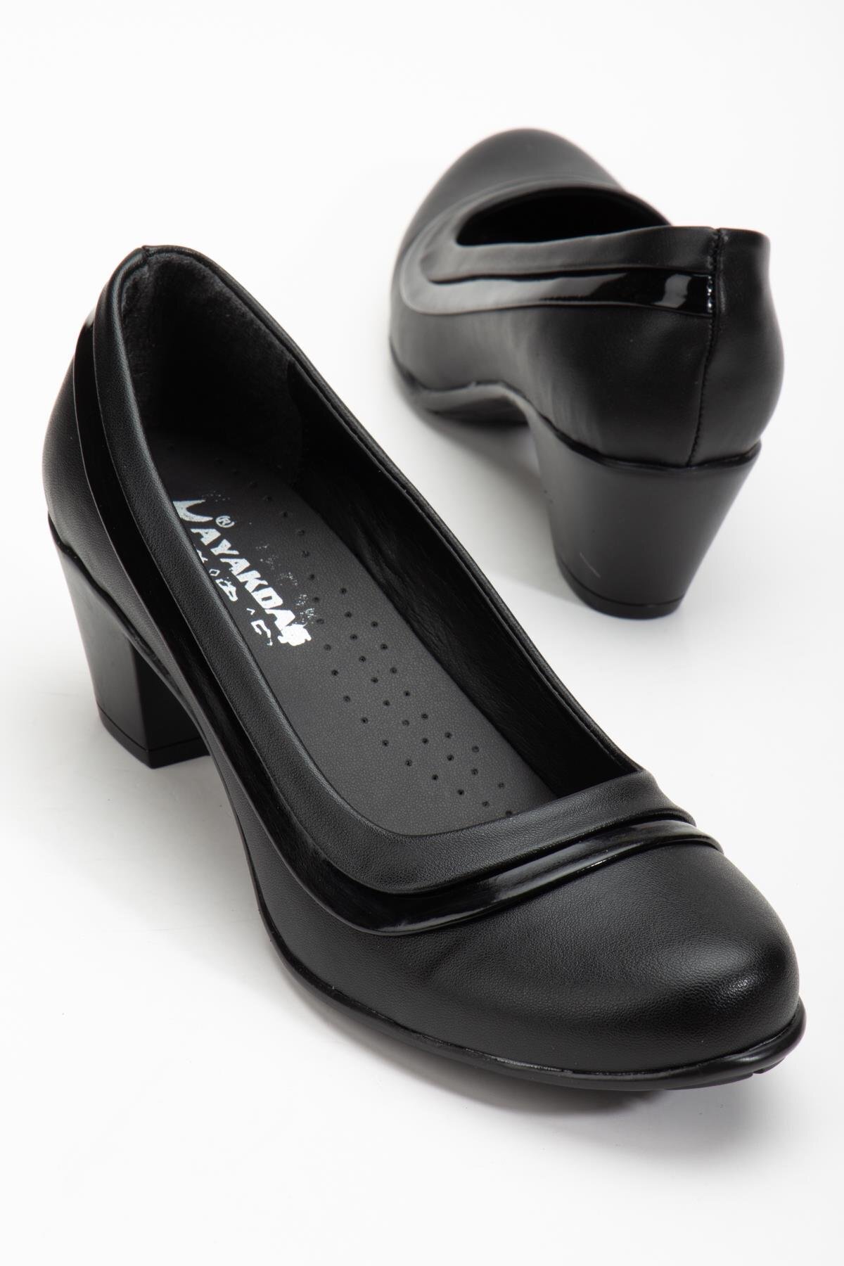 Rugan ve Cilt Hazır Taban Siyah Kadın Günlük Klasik Topuklu Ayakkabı