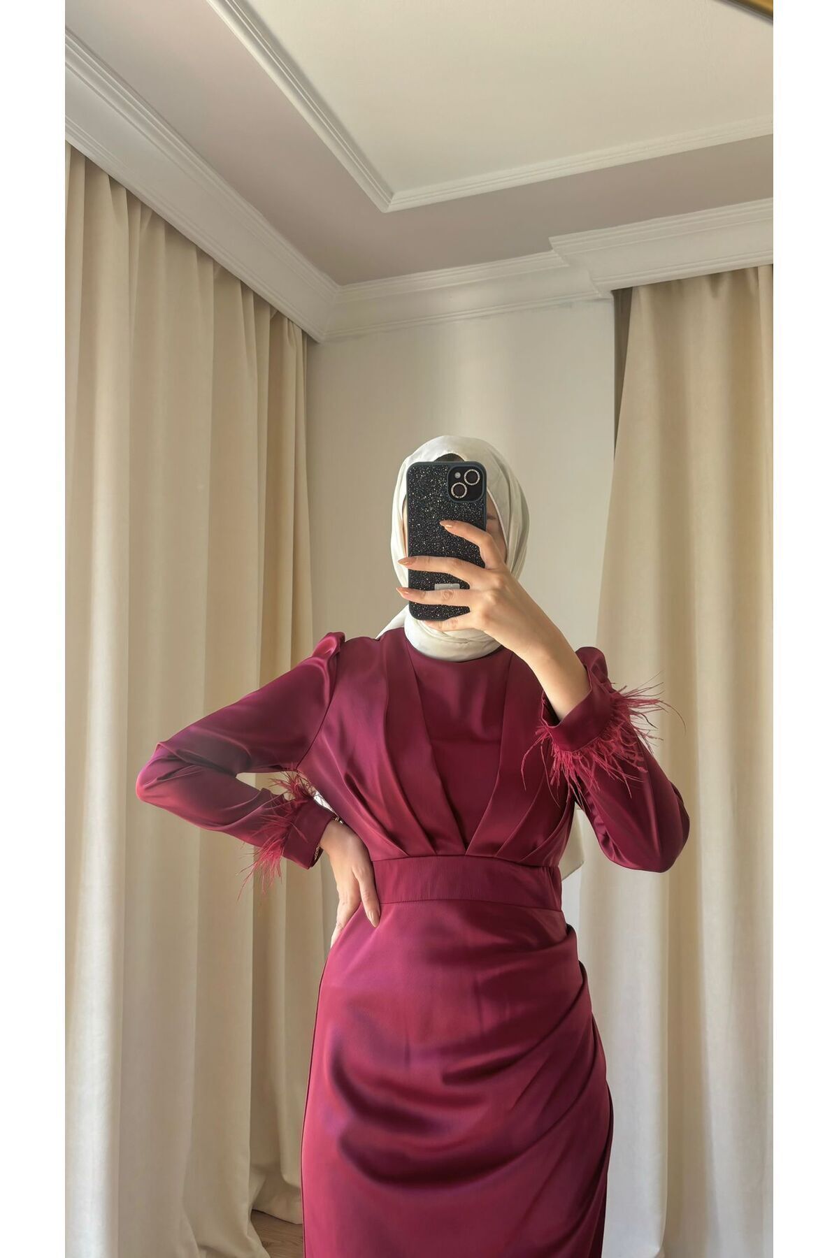 Uzun kollu tasarımı, tesettür giyim tercih edenler için mükemmel bir seçenektir